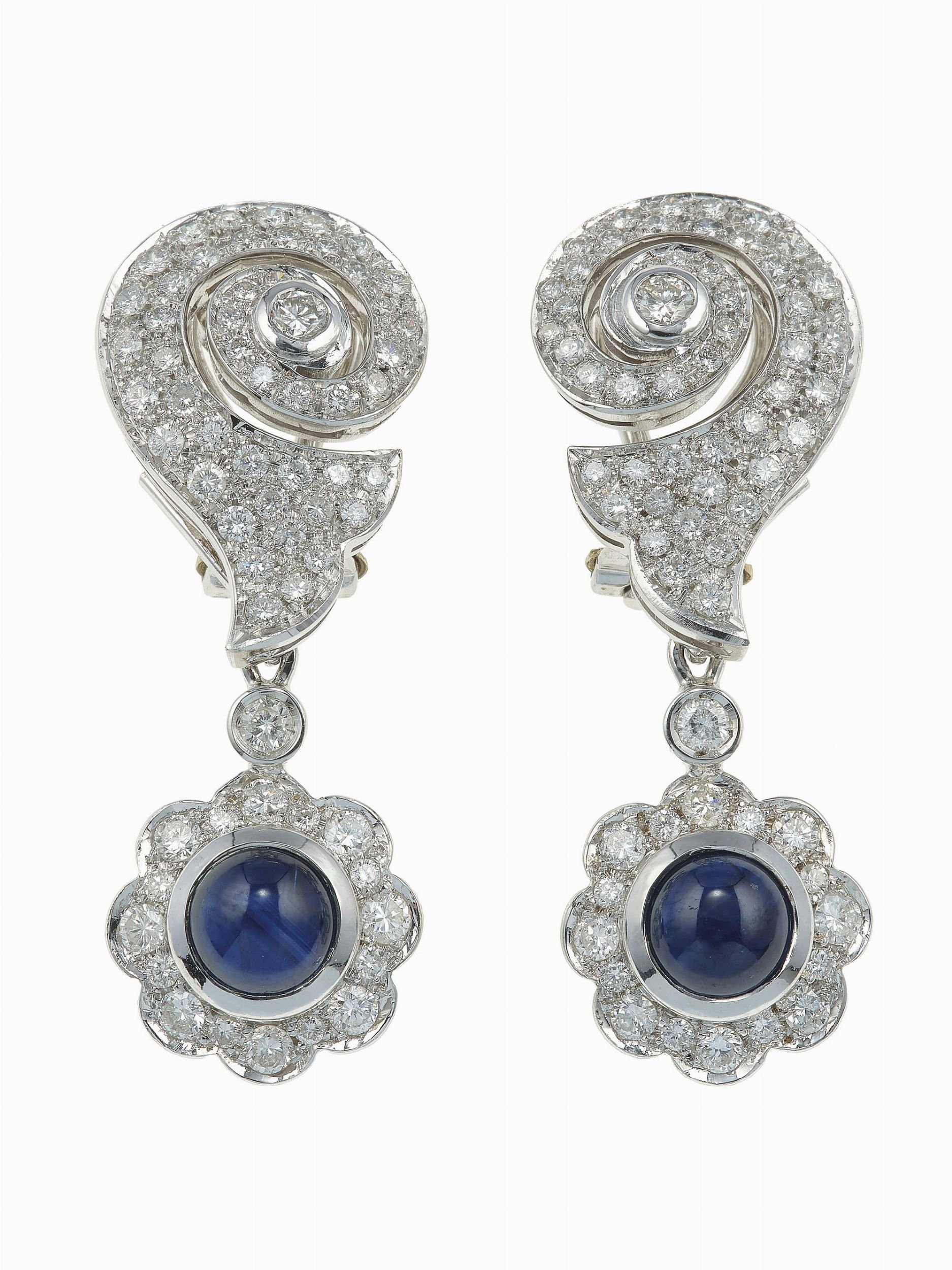 Orecchini con zaffiri taglio cabochon e diamanti