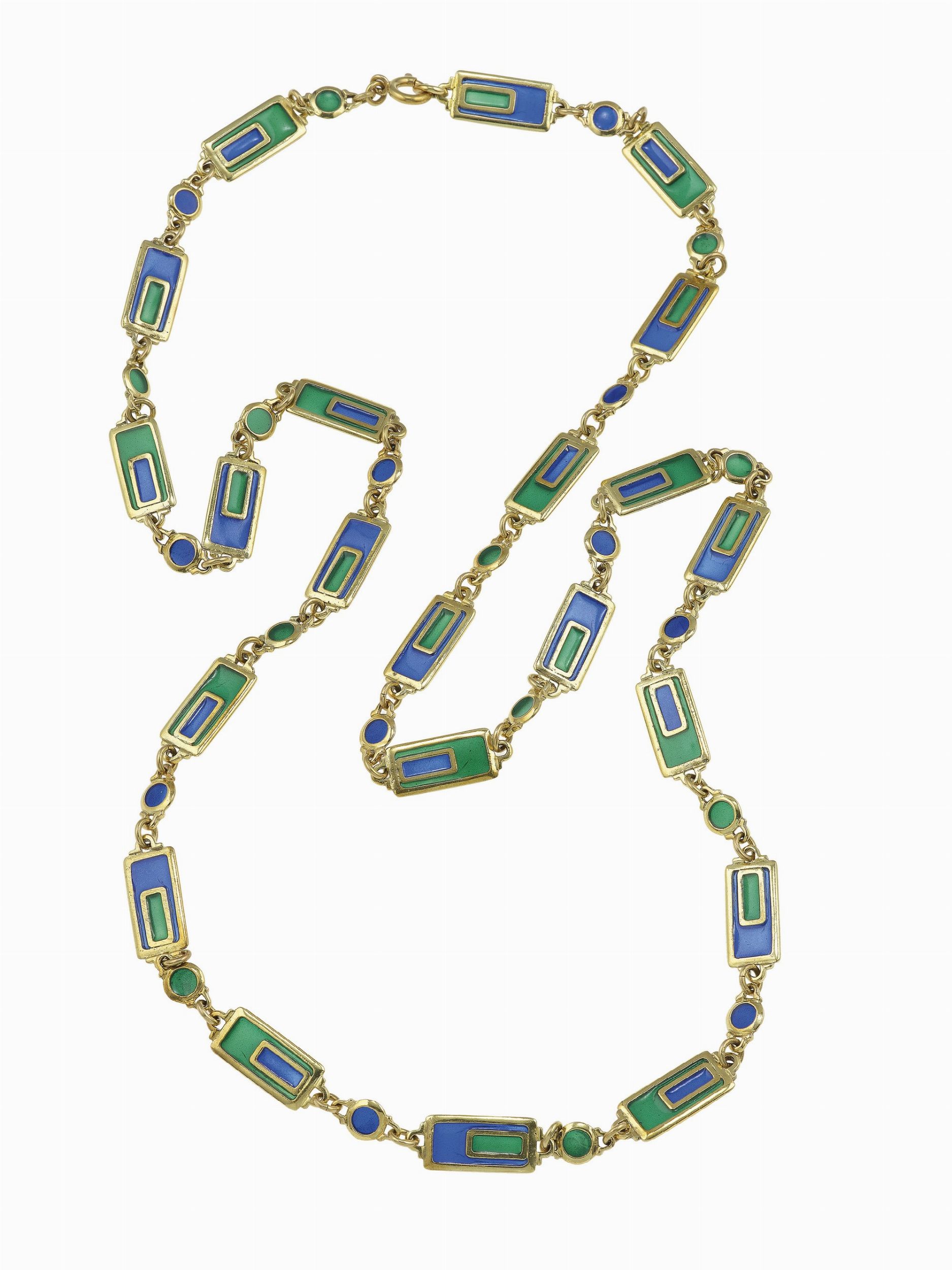 Sautoir a maglie rettangolari con smalto plique-Ã -jour blu e verde