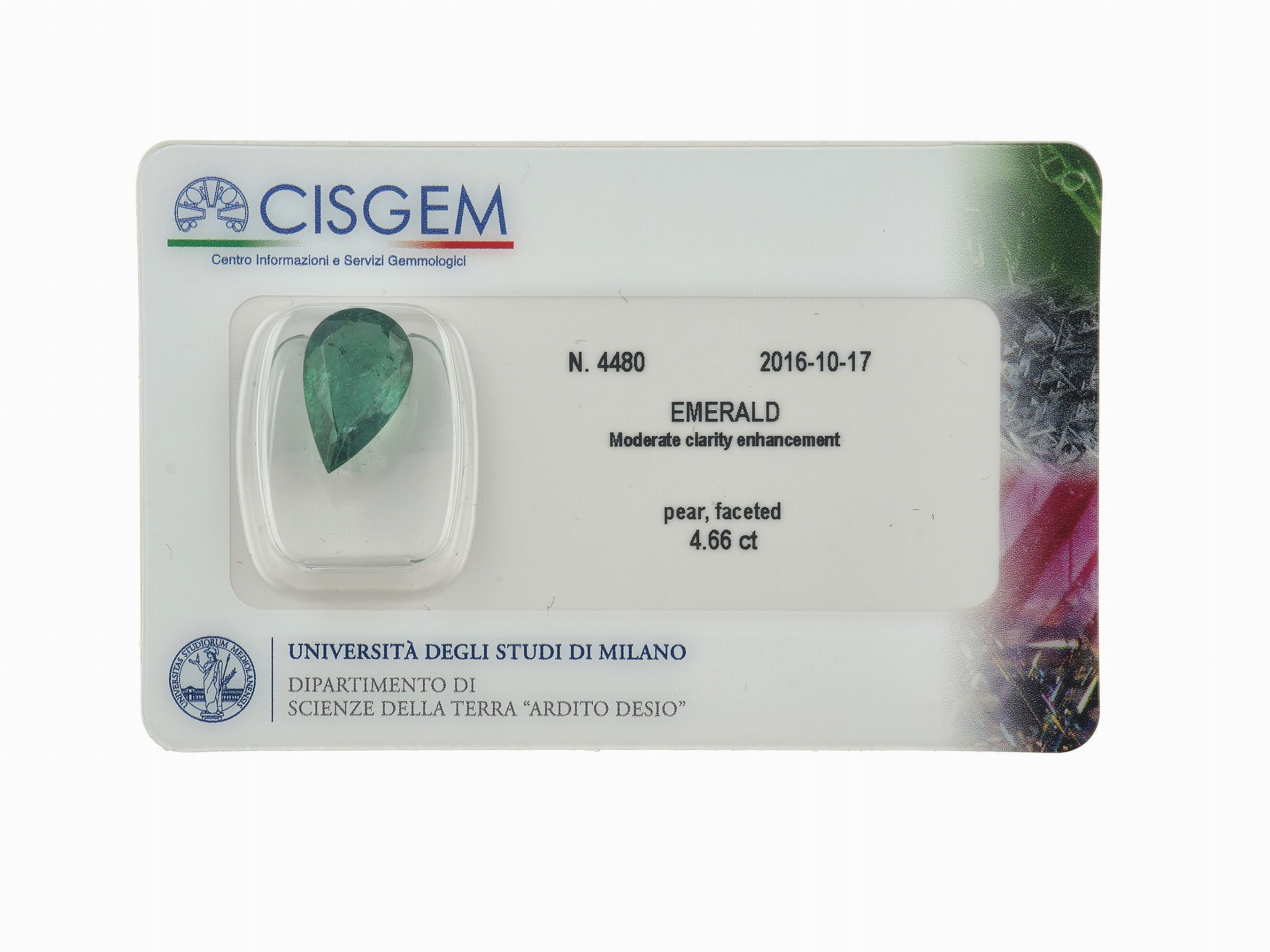 Smeraldo, taglio a goccia sfaccettato, di ct 4.66, moderato riempimento di fessu [..]