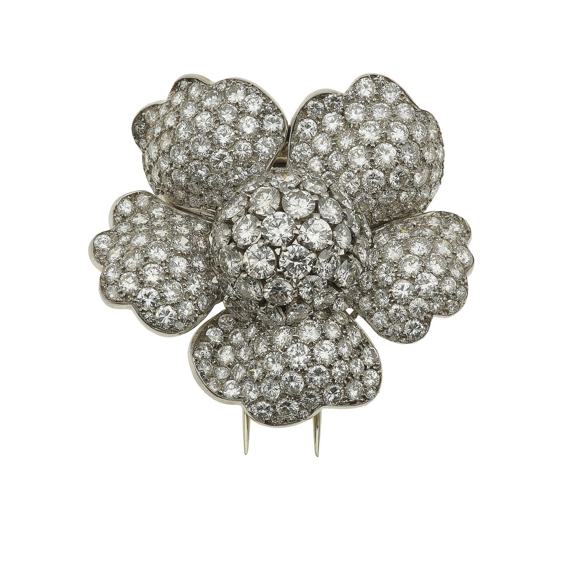 Spilla a soggetto floreale con diamanti taglio brillante
