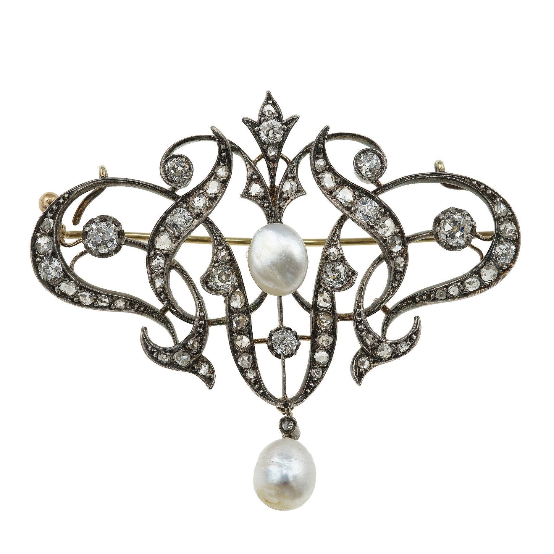 Spilla con diamanti di vecchio taglio e perle