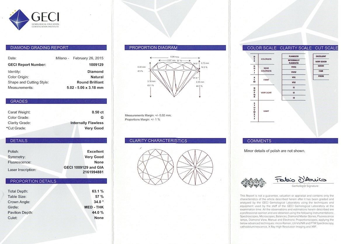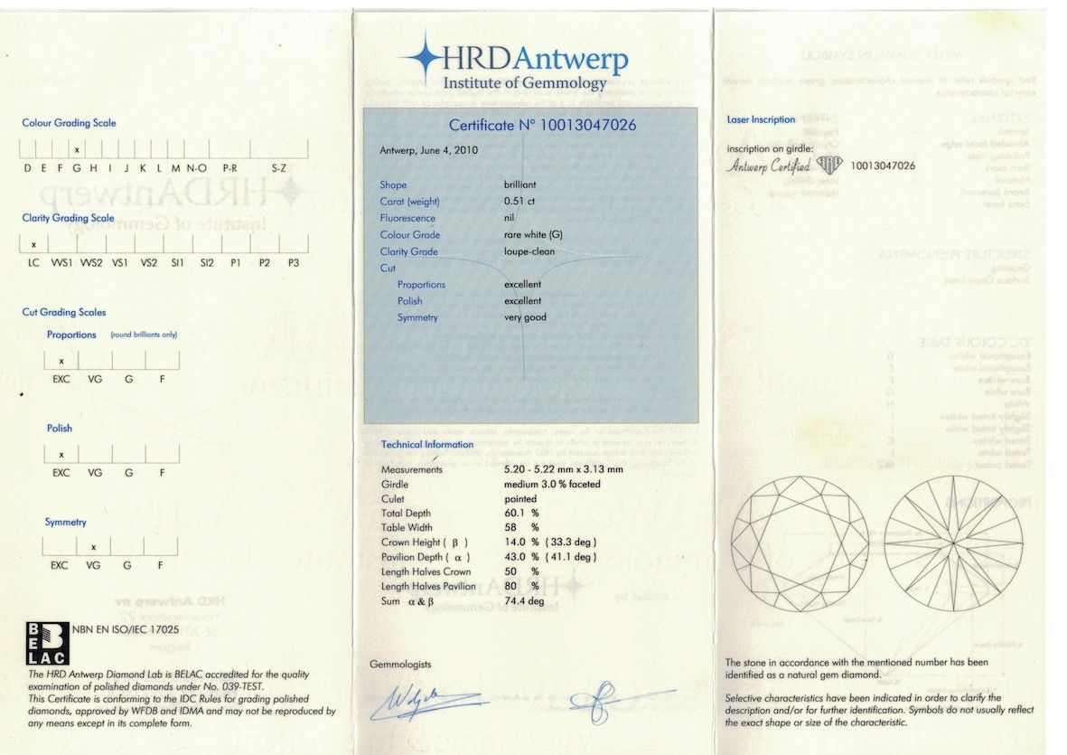 Tre diamanti taglio rotondo a brillante di ct 0.50, 0.51 e 0.51, colore G, caratteristiche [..]