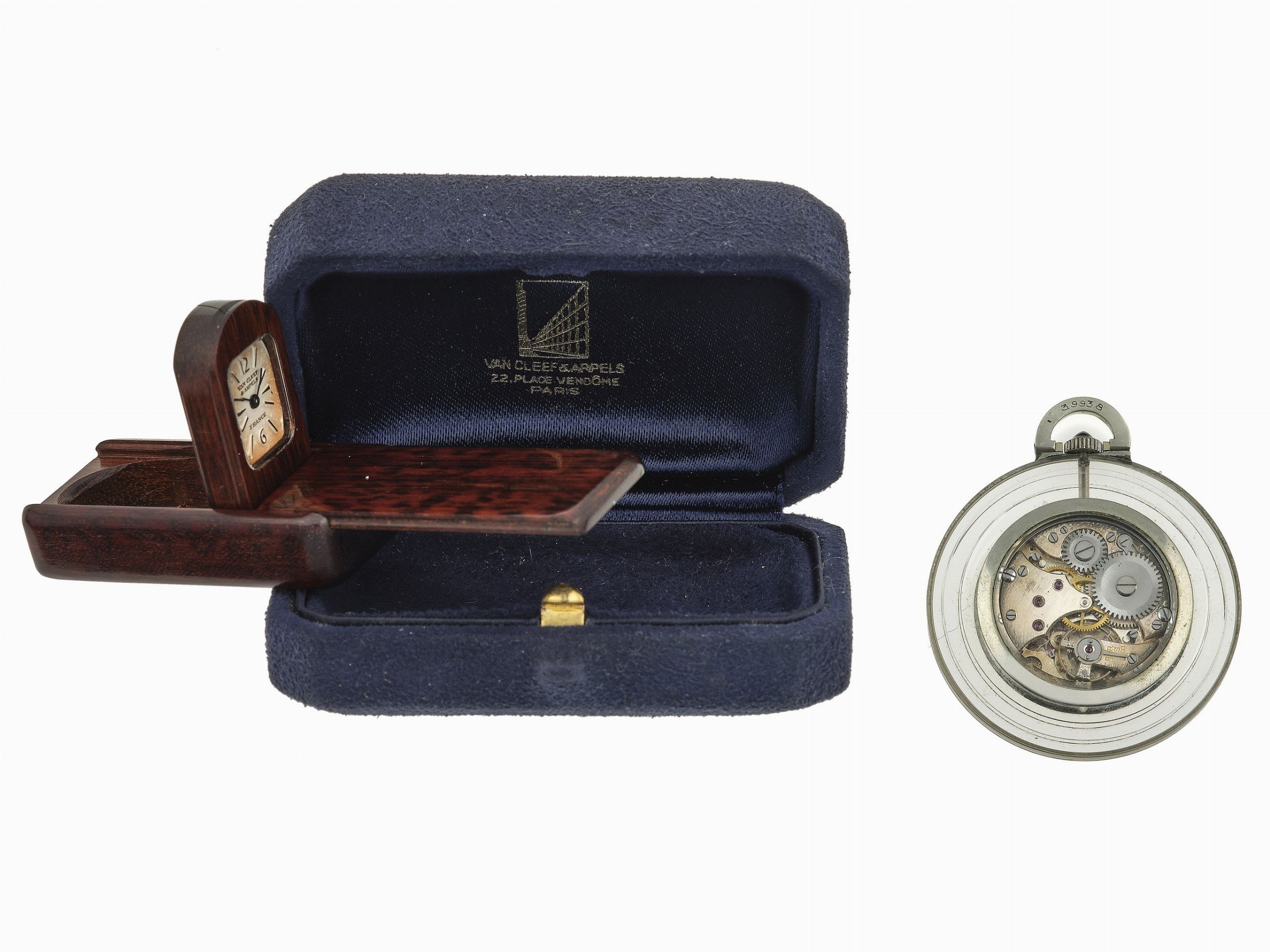 Van Cleef & Arpels. Lotto composto da orologio da viaggio e orologio da tasca
