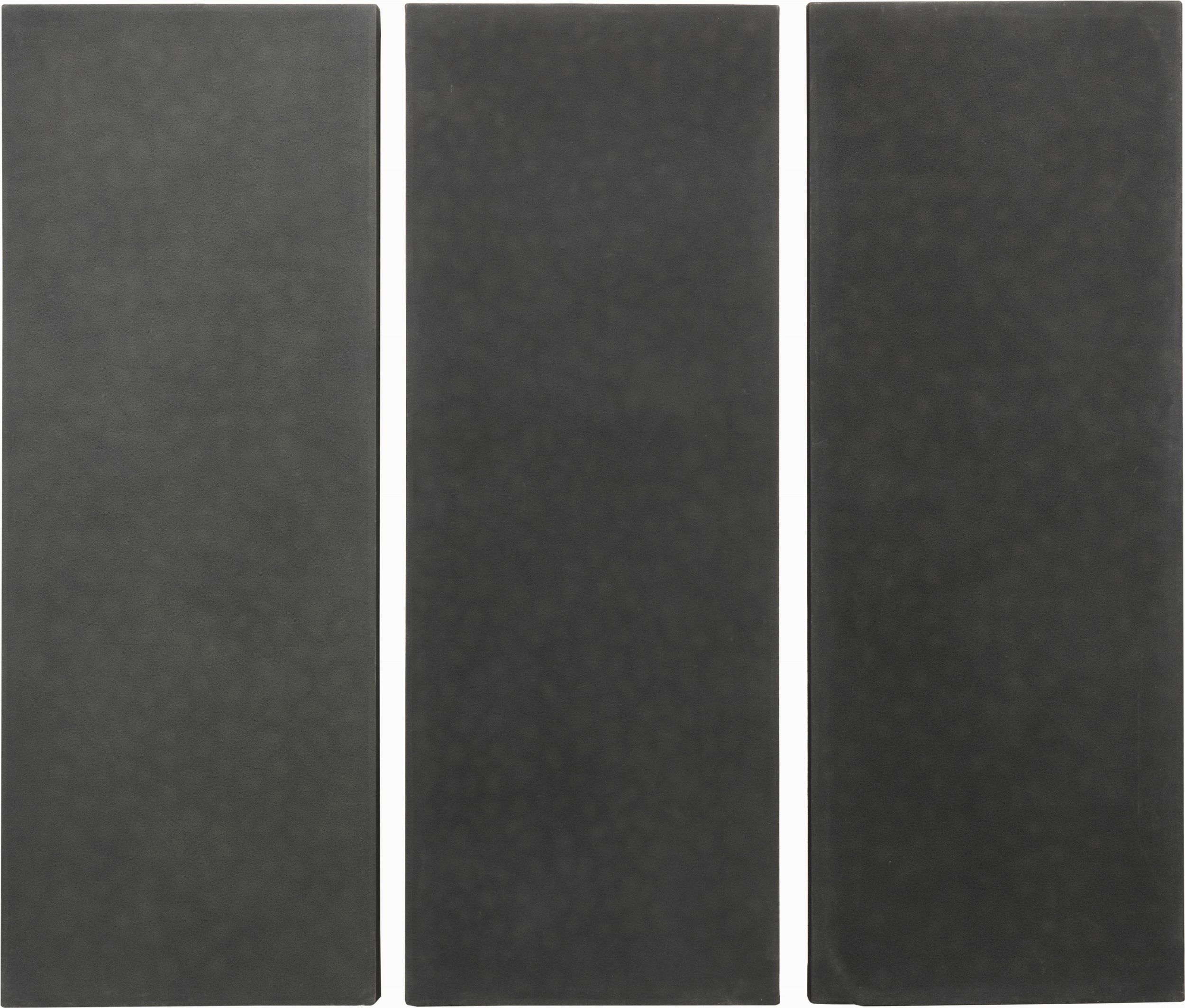 Acrilico su tela, tre elementi, cm 160x60 ognuno 1975 Firma, titolo e data al verso sulla tela di ogni elemento: Pino Pinelli / 'Pittura Grigia' / Milano 1975 / Pino Pinelli: scritta Bertesca / 76; sul telaio di due elementi: etichetta Galleria La Bertesca, Genova, Milano, Düsseldorf, con n. BI/146/75.