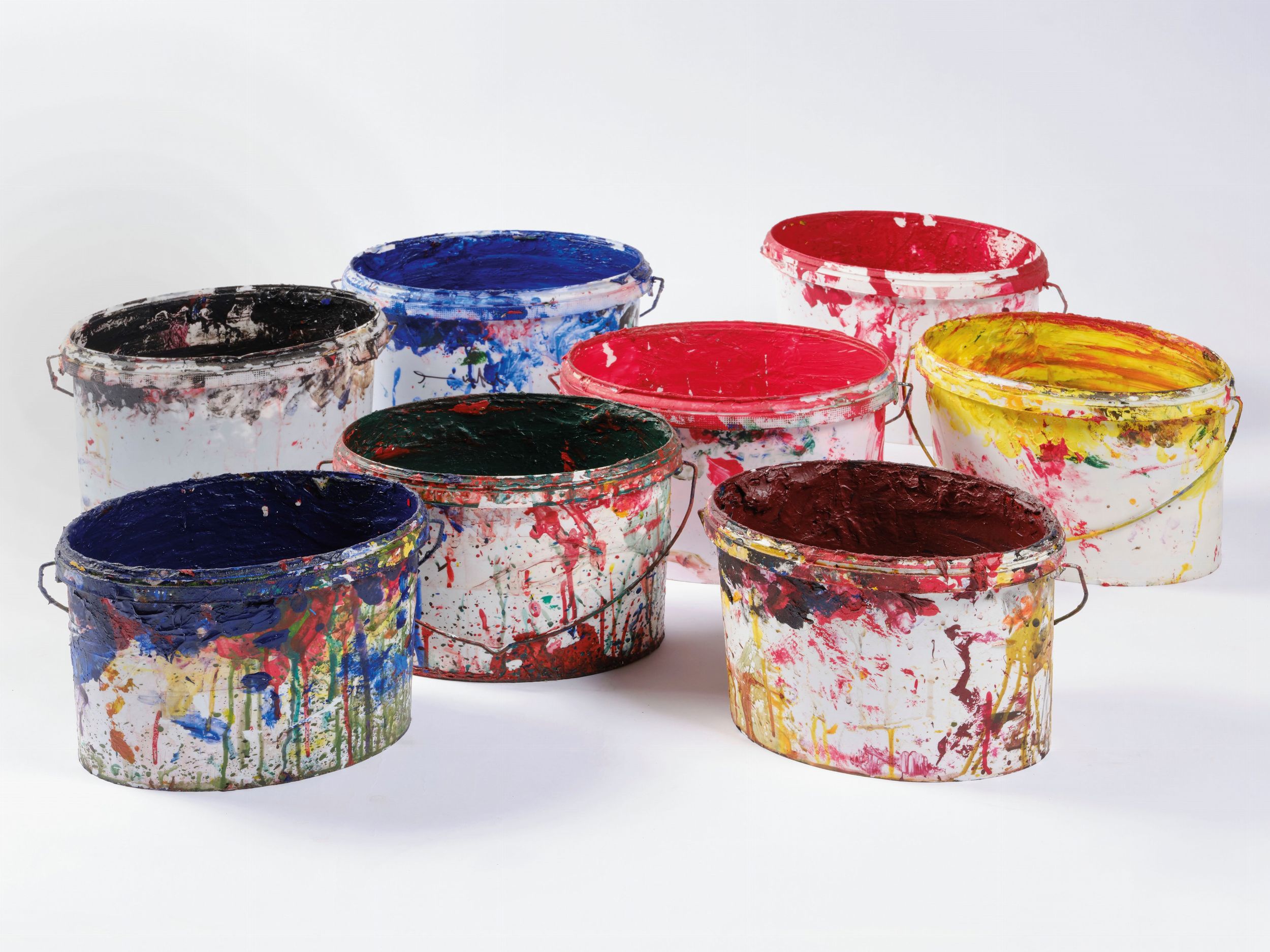 Acrilici su barattoli di colore, installazione ambientale, otto elementi, misure variabili