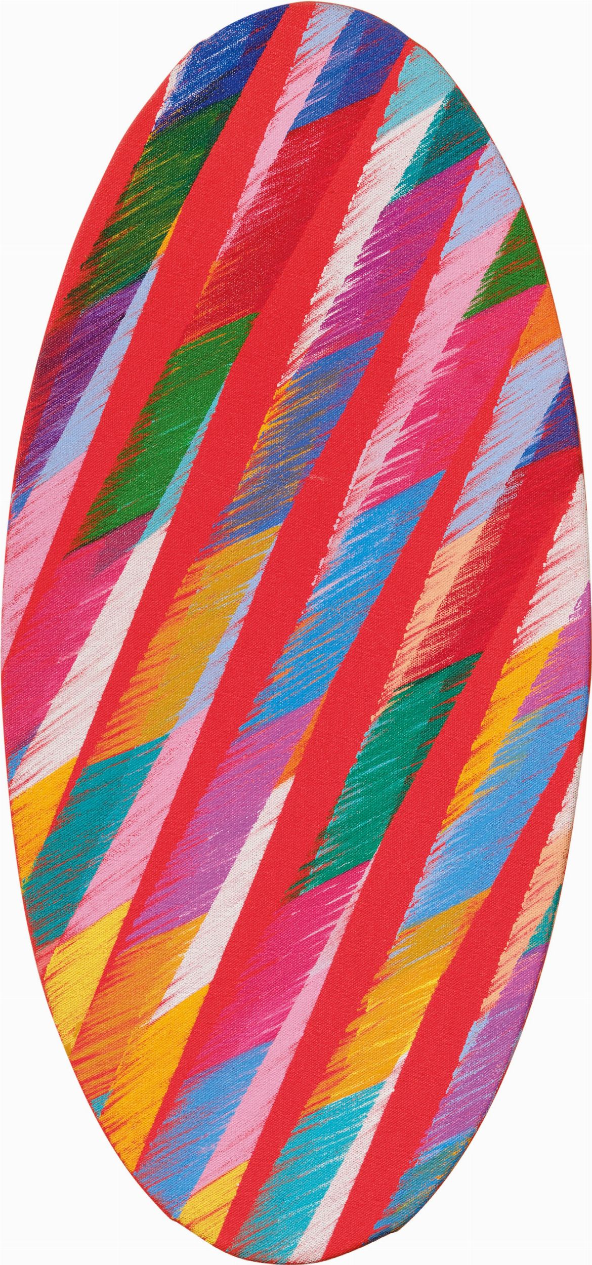 Olio su tela, cm 64,5x30, ovale 1986 Firma, titolo e data al verso sulla tela: Piero / Dorazio / 'Rossivari' / 1986: timbro Galleria d'Arte [...] / Autentico, con n. V388; sul telaio: timbro Piero Dorazio, con n. 1831: etichetta Aurelio Stefanini Studio D'Arte, Firenze.