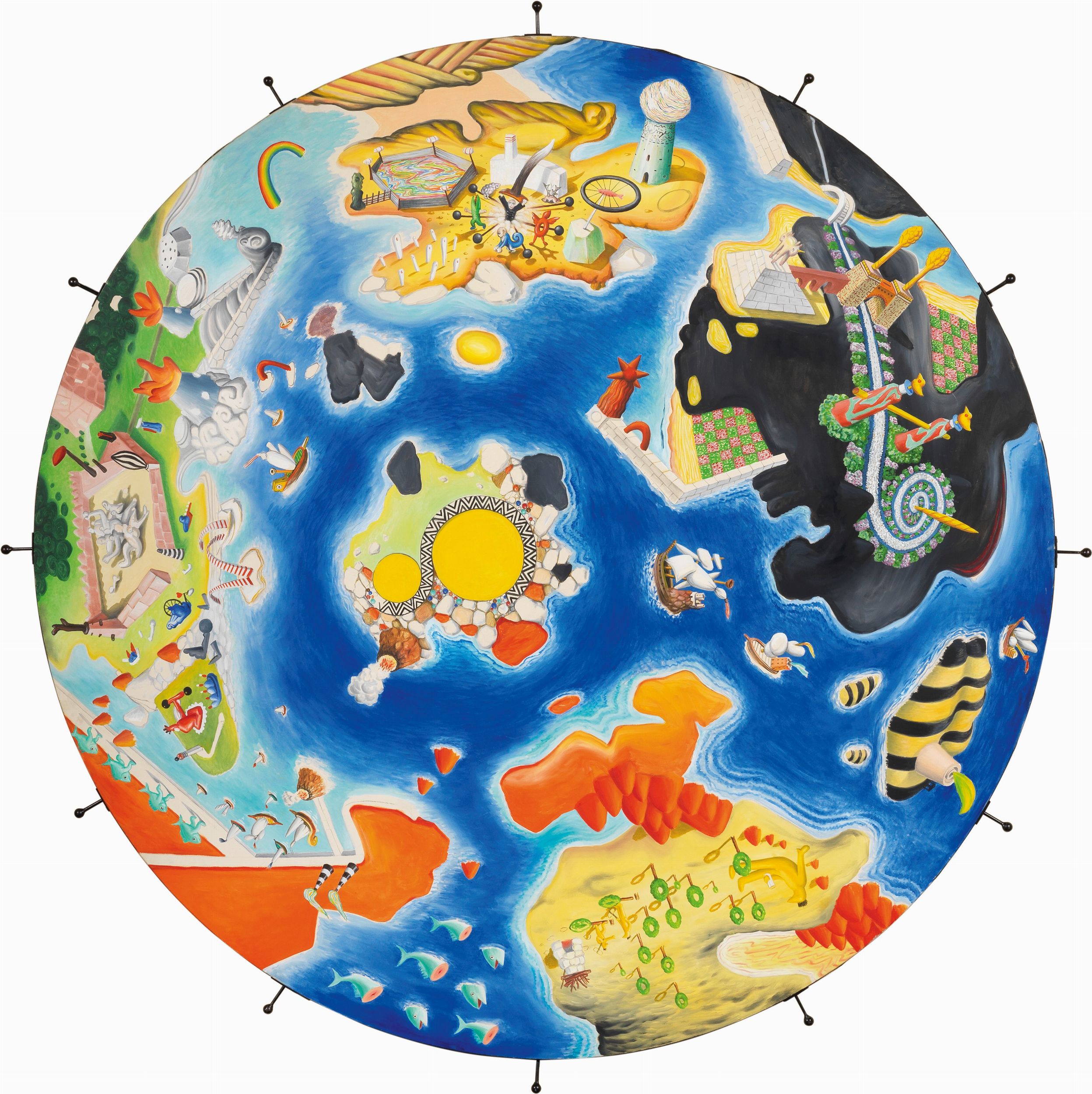 Olio su tela e assemblaggio, cm 190 ø (tela), cm 204,5 ø (assemblaggio)