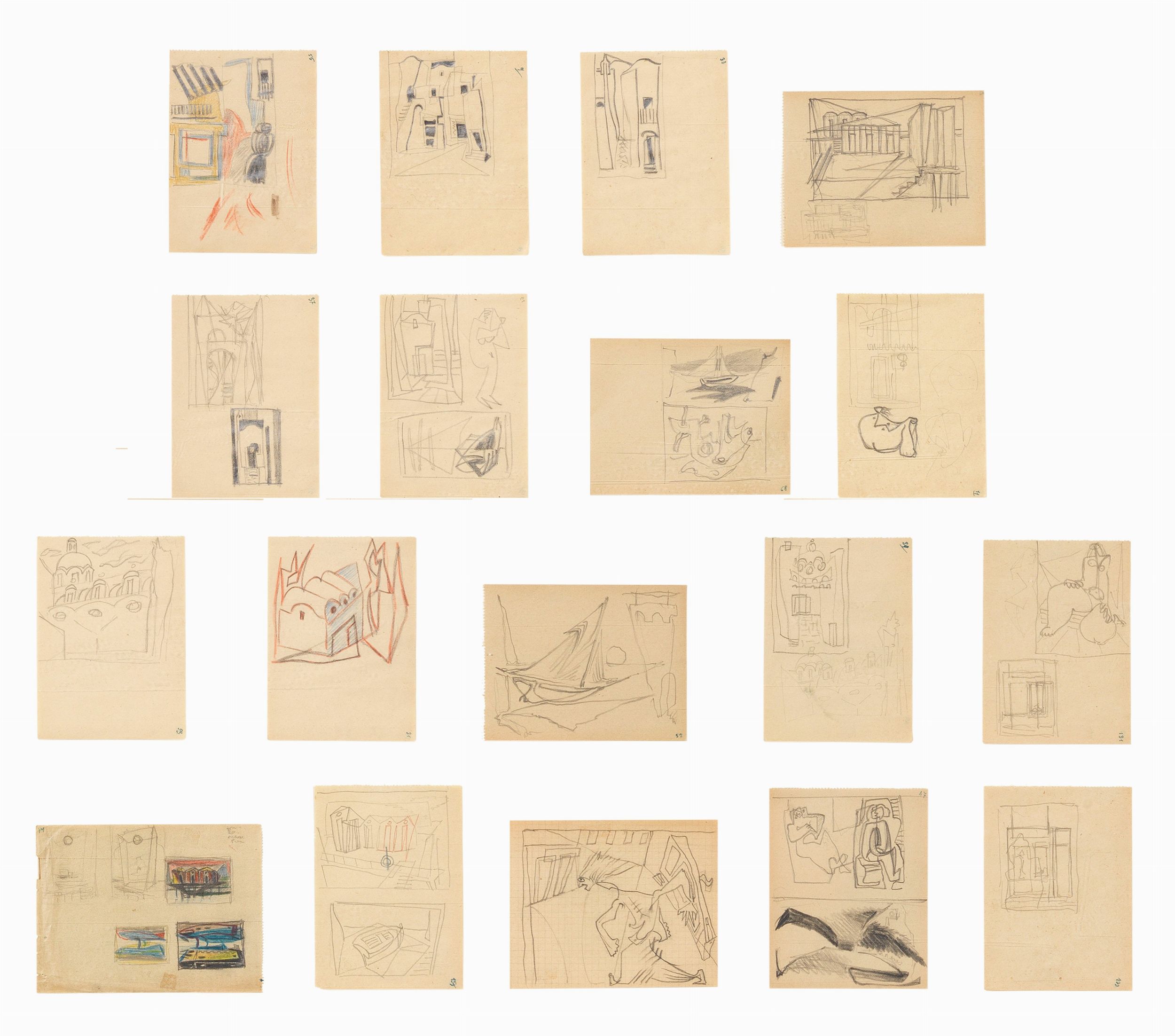 Matita e pastello su carta, cm 12,5x9,5 ca. ognuno