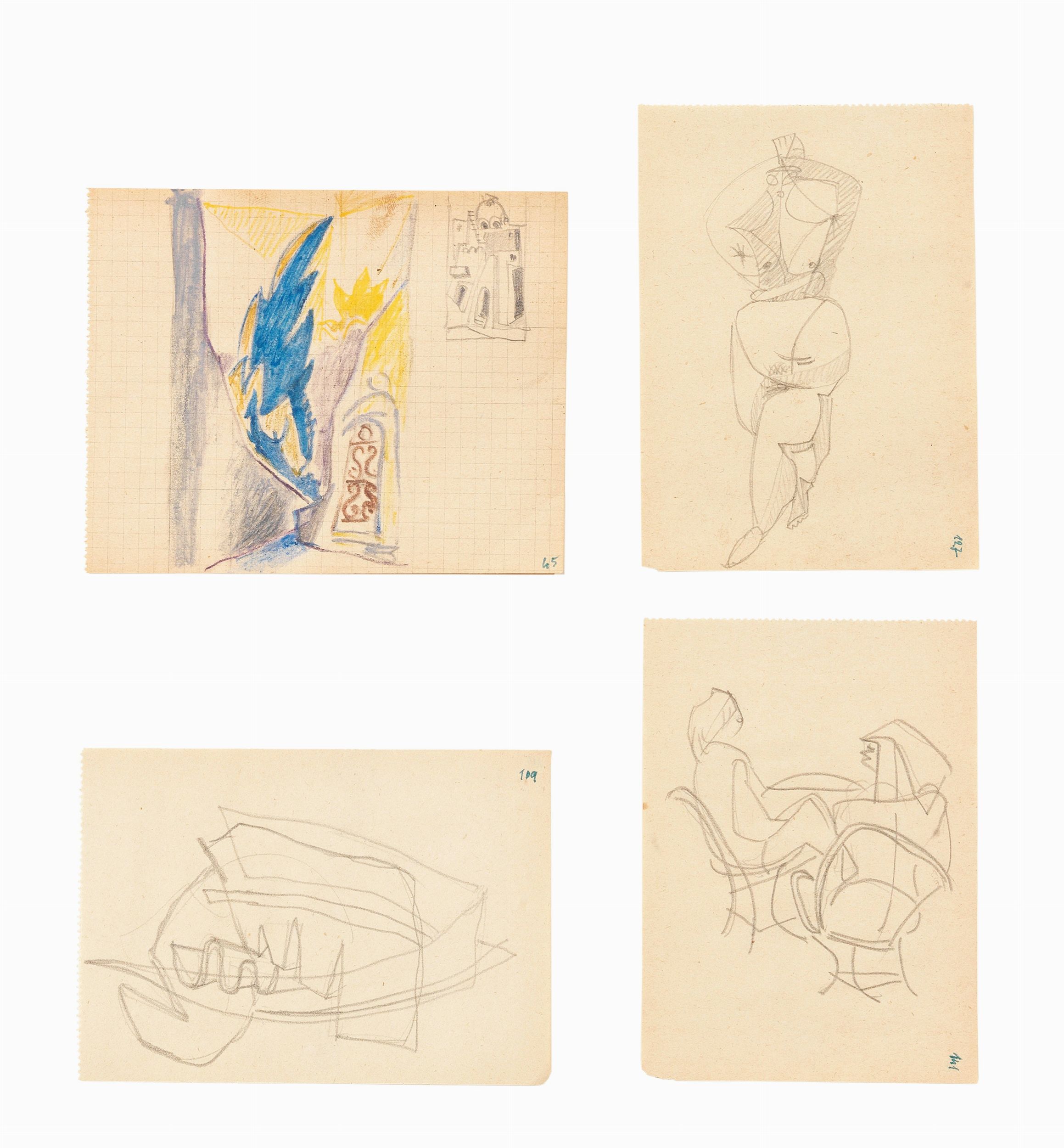Matita e pastello su carta, cm 12,5x10 ca. ognuno