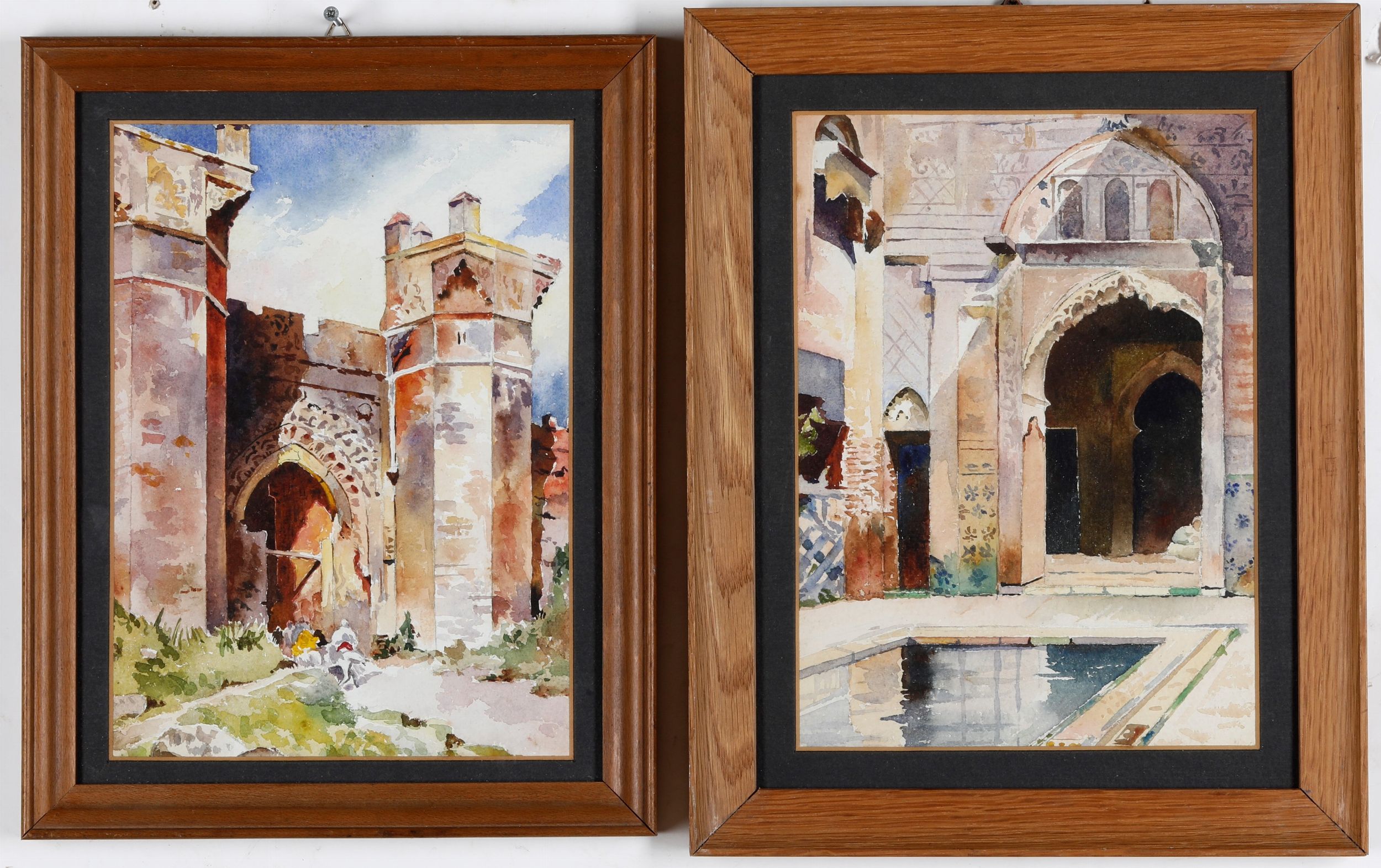 Coppia di acquarelli con vedute orientaliste. XIX-XX secolo