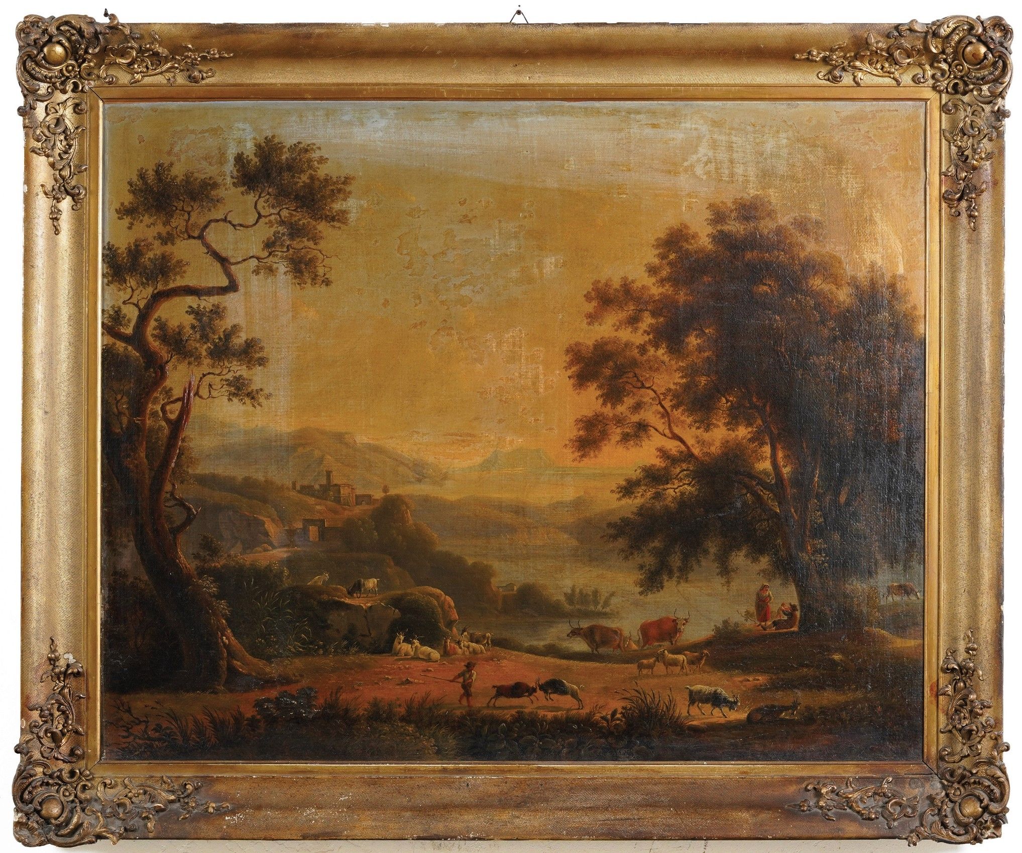 Pittore del XIX secolo Paesaggio con figure e armenti