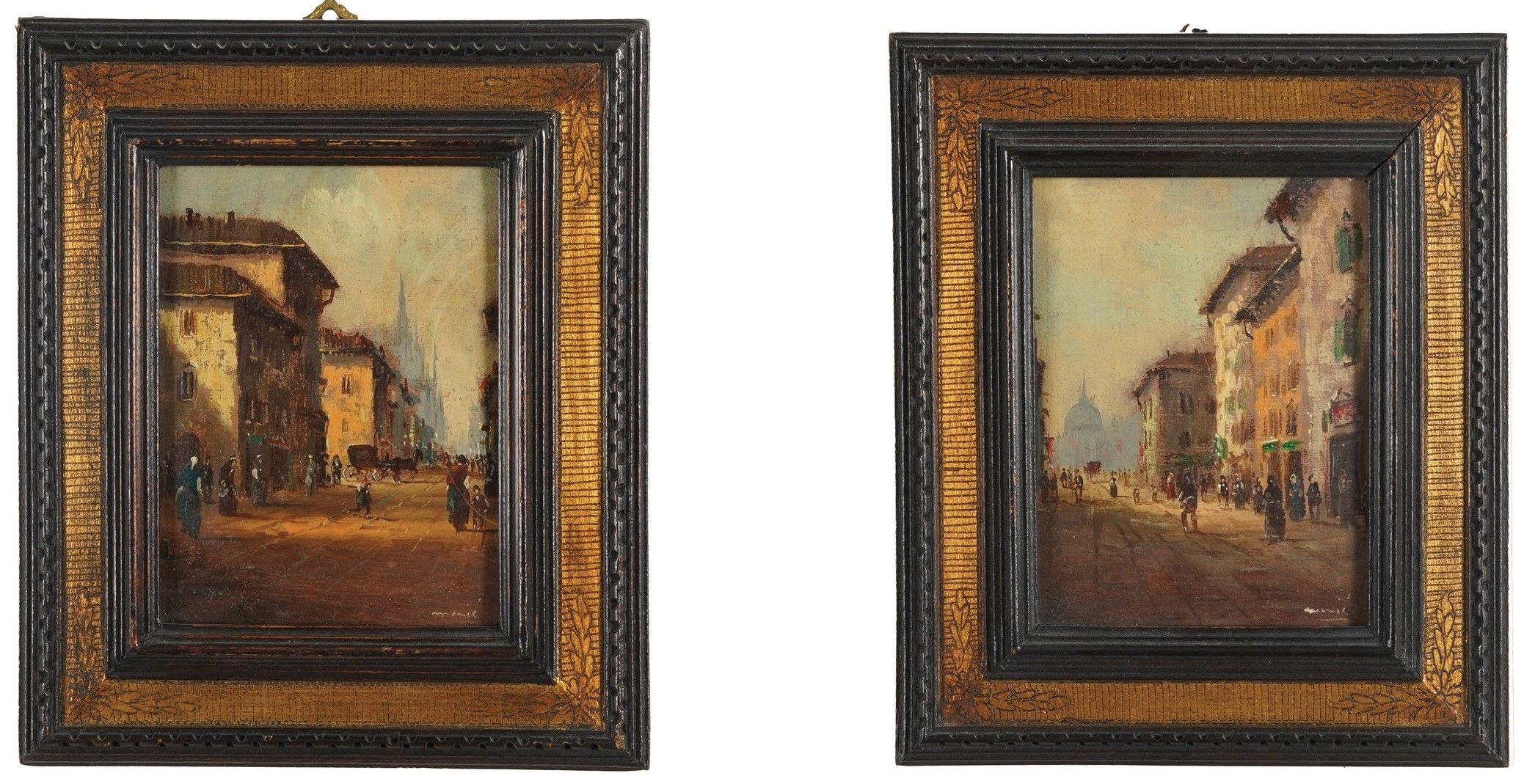 Pittore del XIX-XX secolo Coppia di vedute cittadine