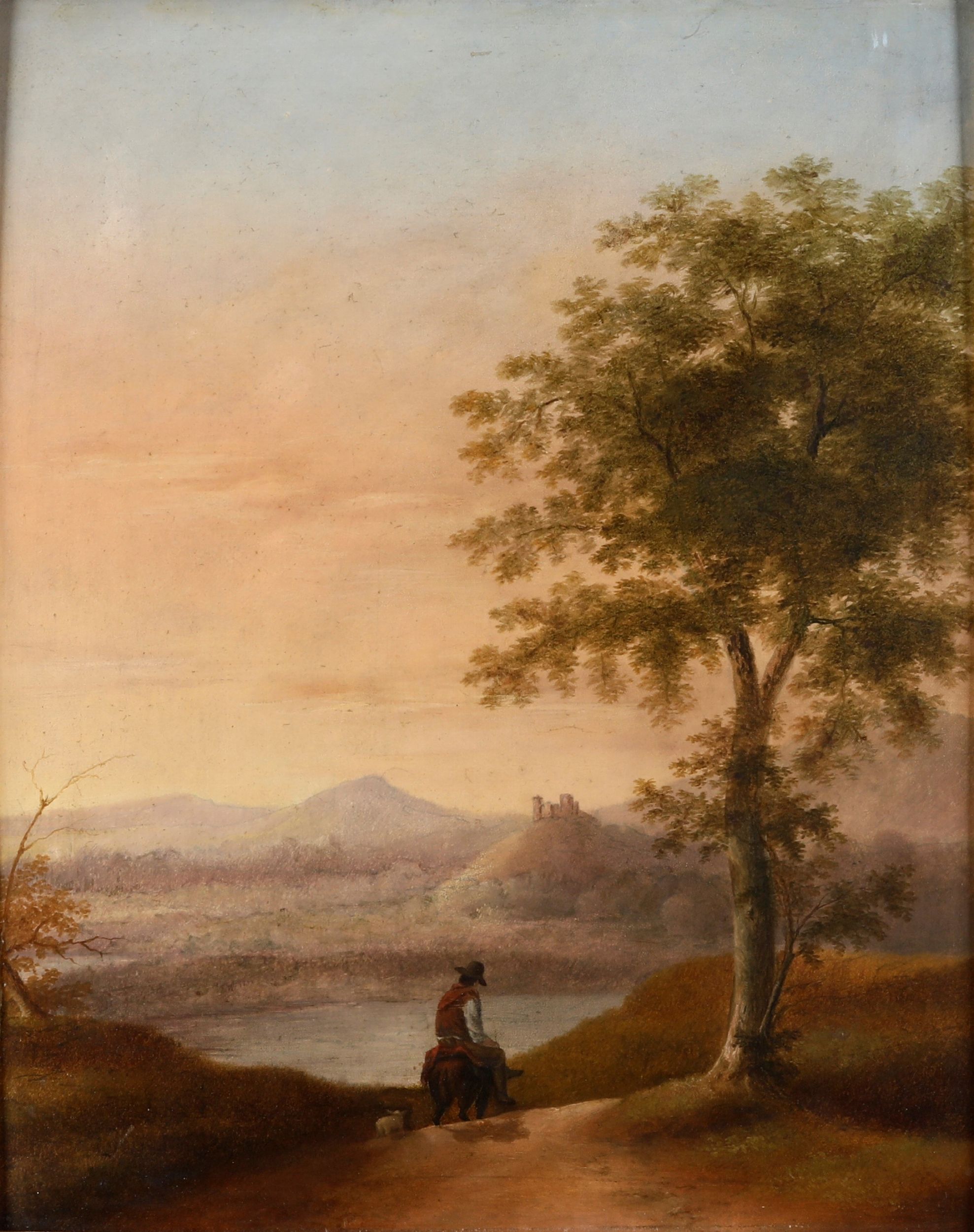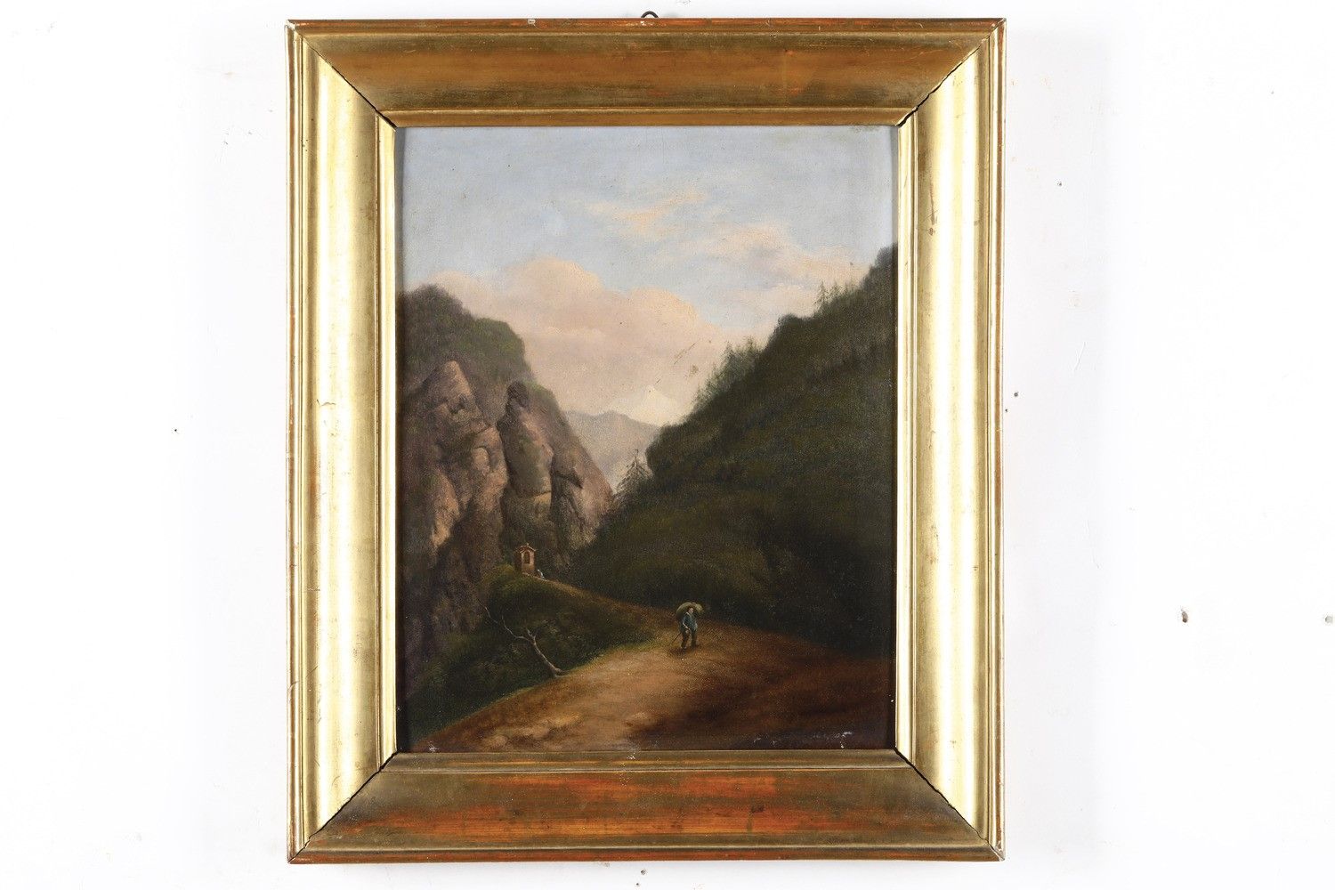 coppia di dipinti ad olio su tavoletta, Largh. 27 - Alt. 32 Cm