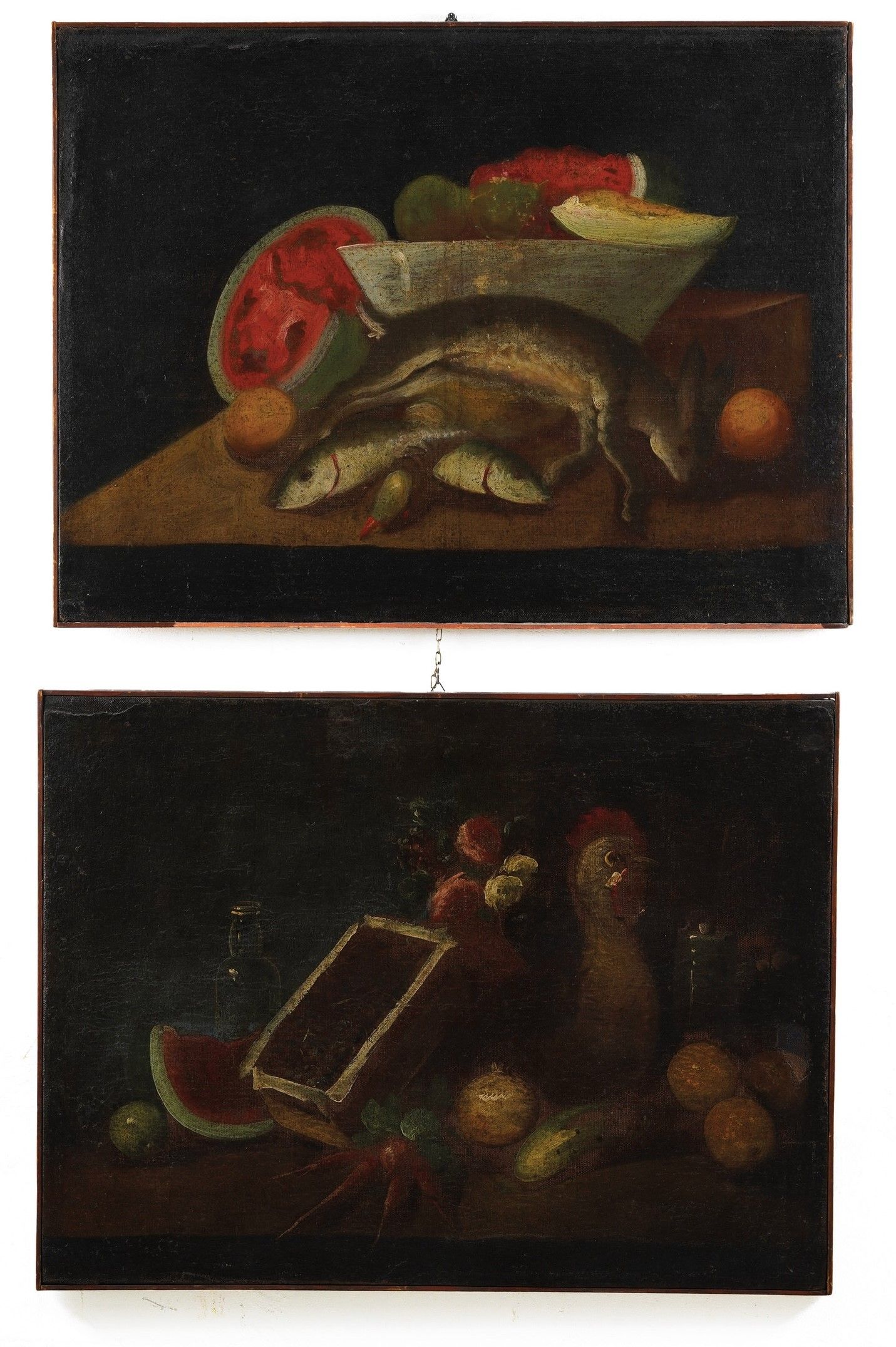 Scuola del XVIII secolo Nature morte con frutti e cacciagione