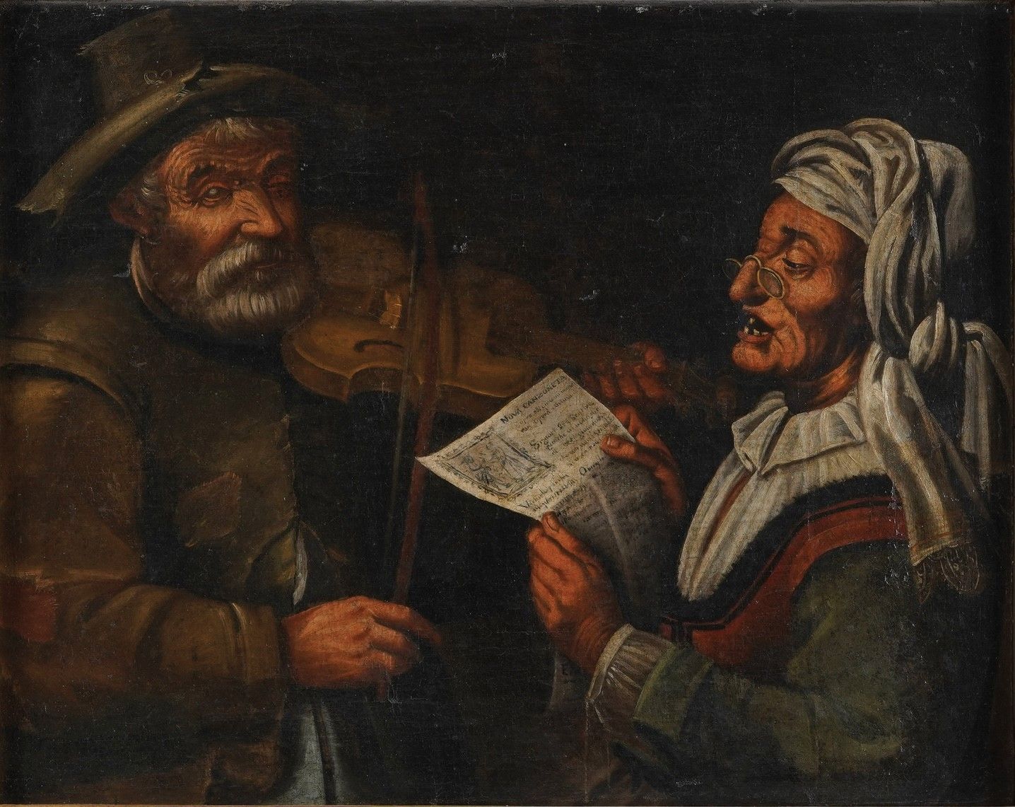 Scuola del XVIII secolo Scena di genere con suonatore di violino