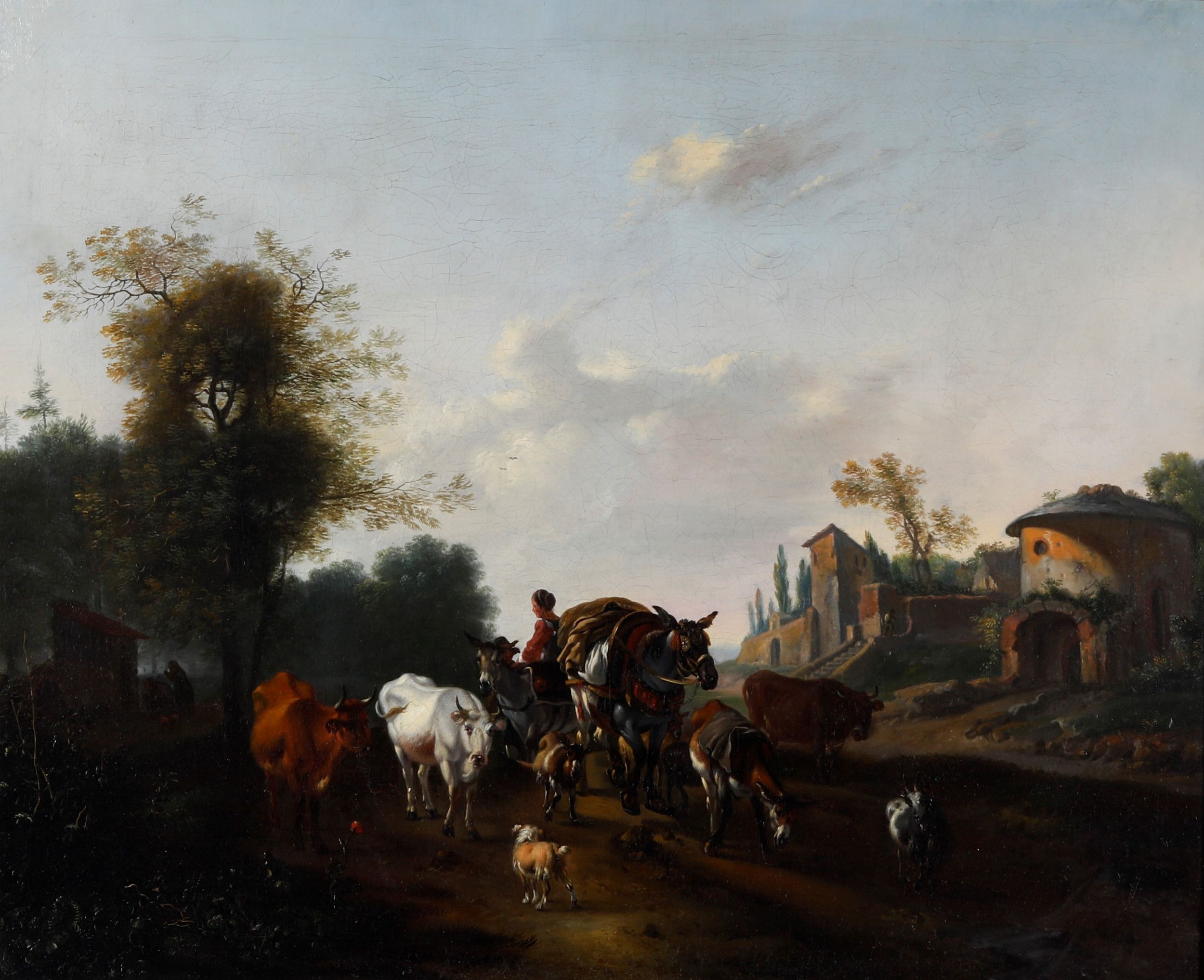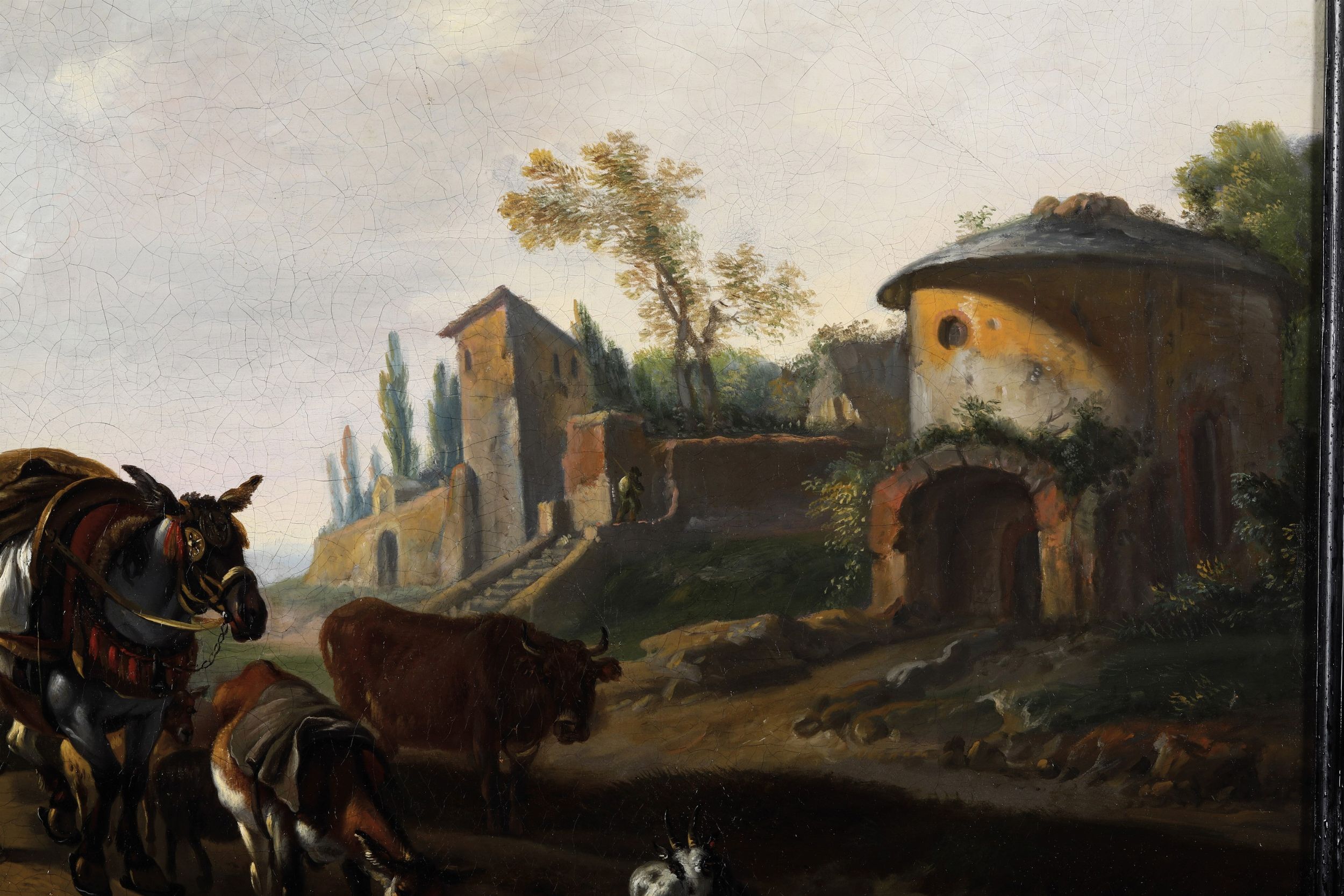 Scuola fiamminga del XVII secolo Paesaggio con pastori e armenti
