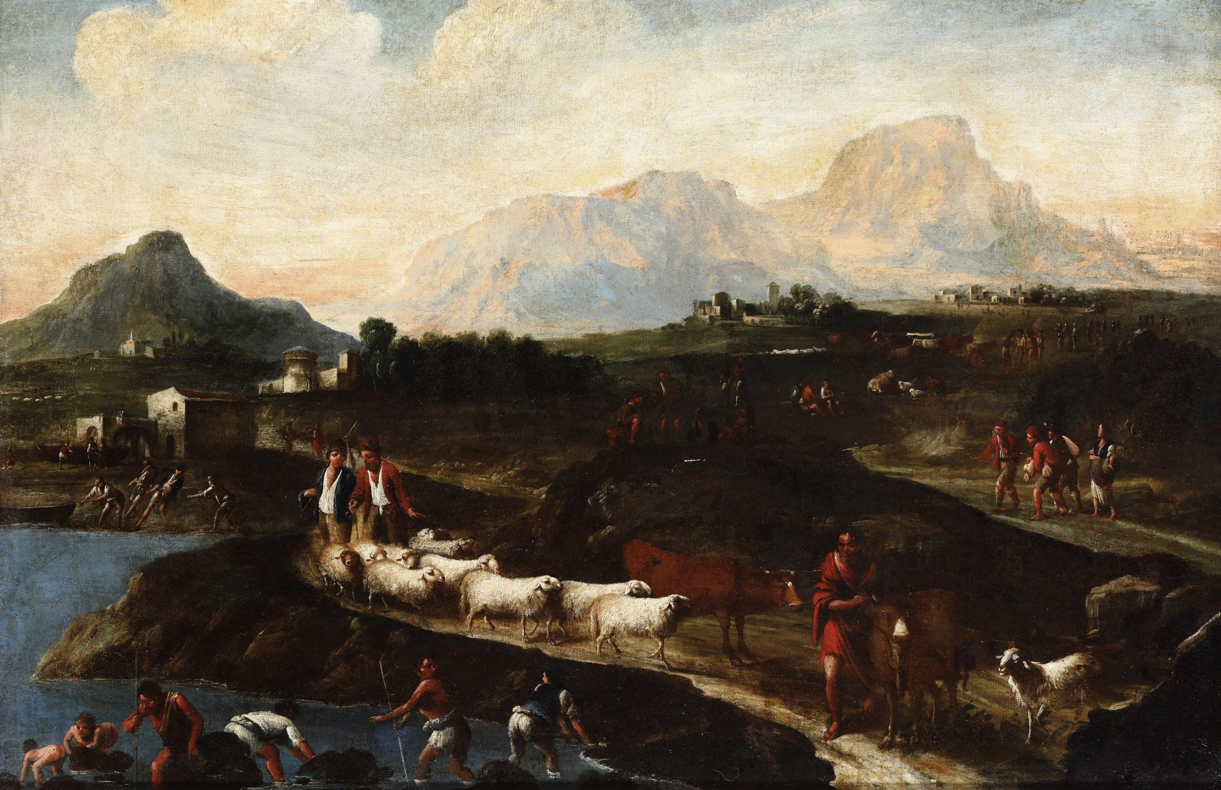 Scuola genovese del XVIII secolo Paesaggio con pastori e armenti