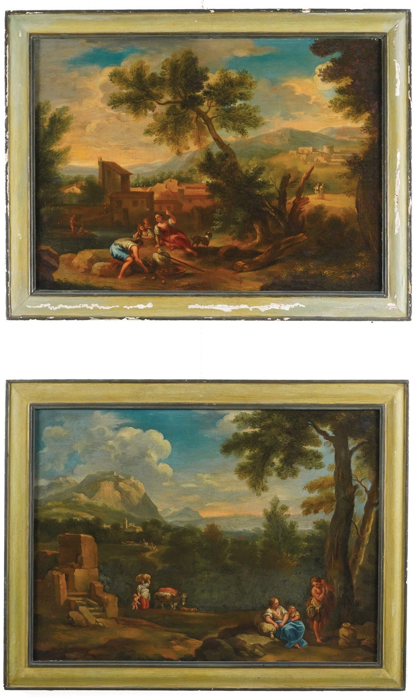 Scuola veneta del XVIII secolo Paesaggi con contadini in riva al fiume