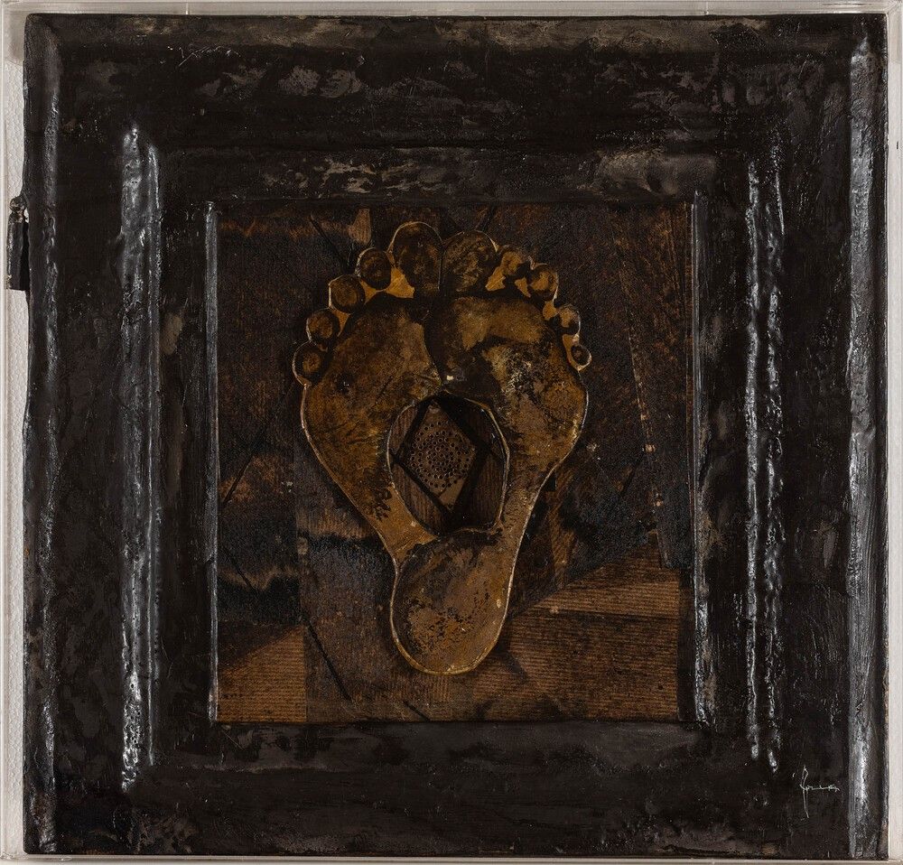 tecnica mista su tavola, Largh. 44 - Prof. 3 - Alt. 44 Cm