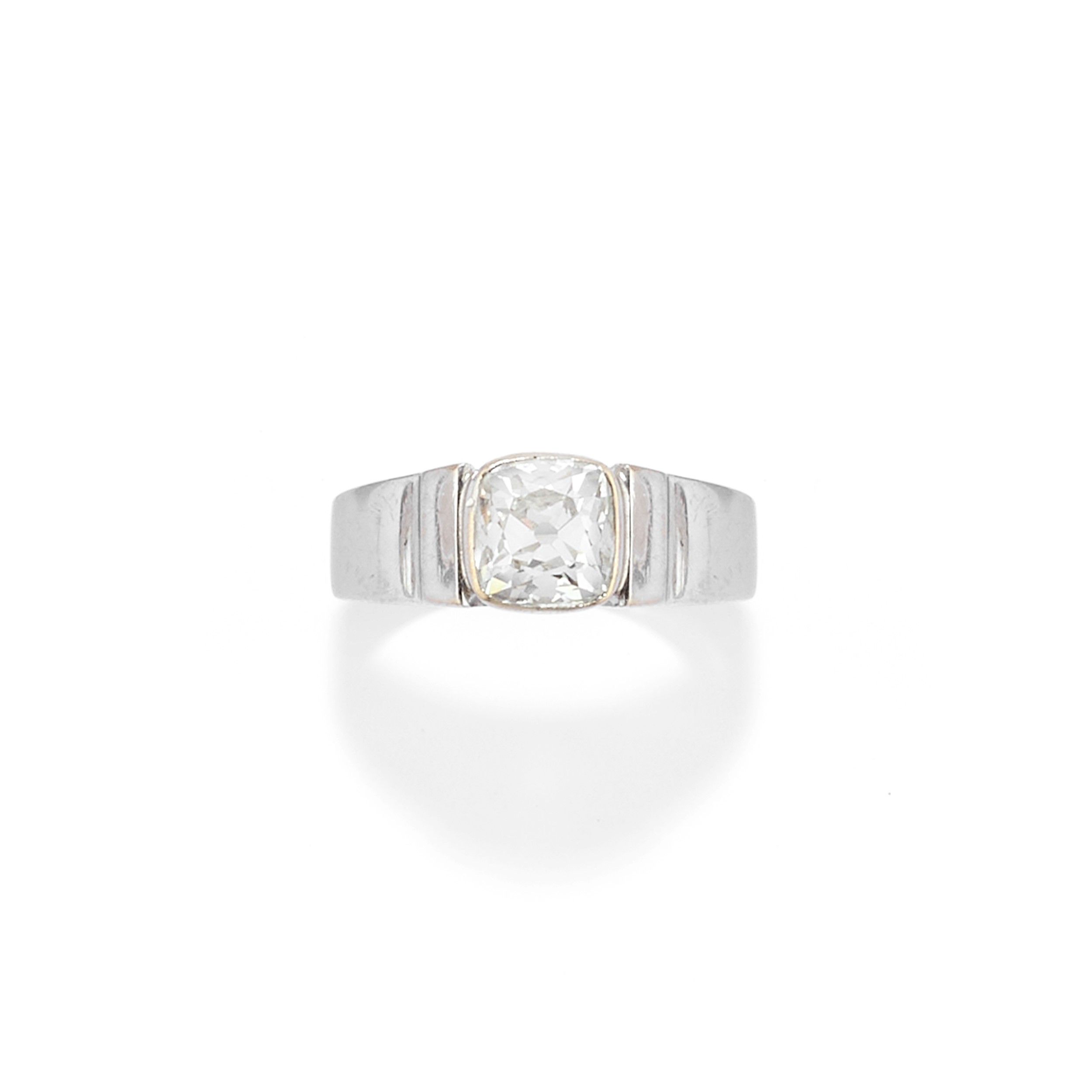a solitario, al centro diamante taglio cuscino di ct 1,00 circa.