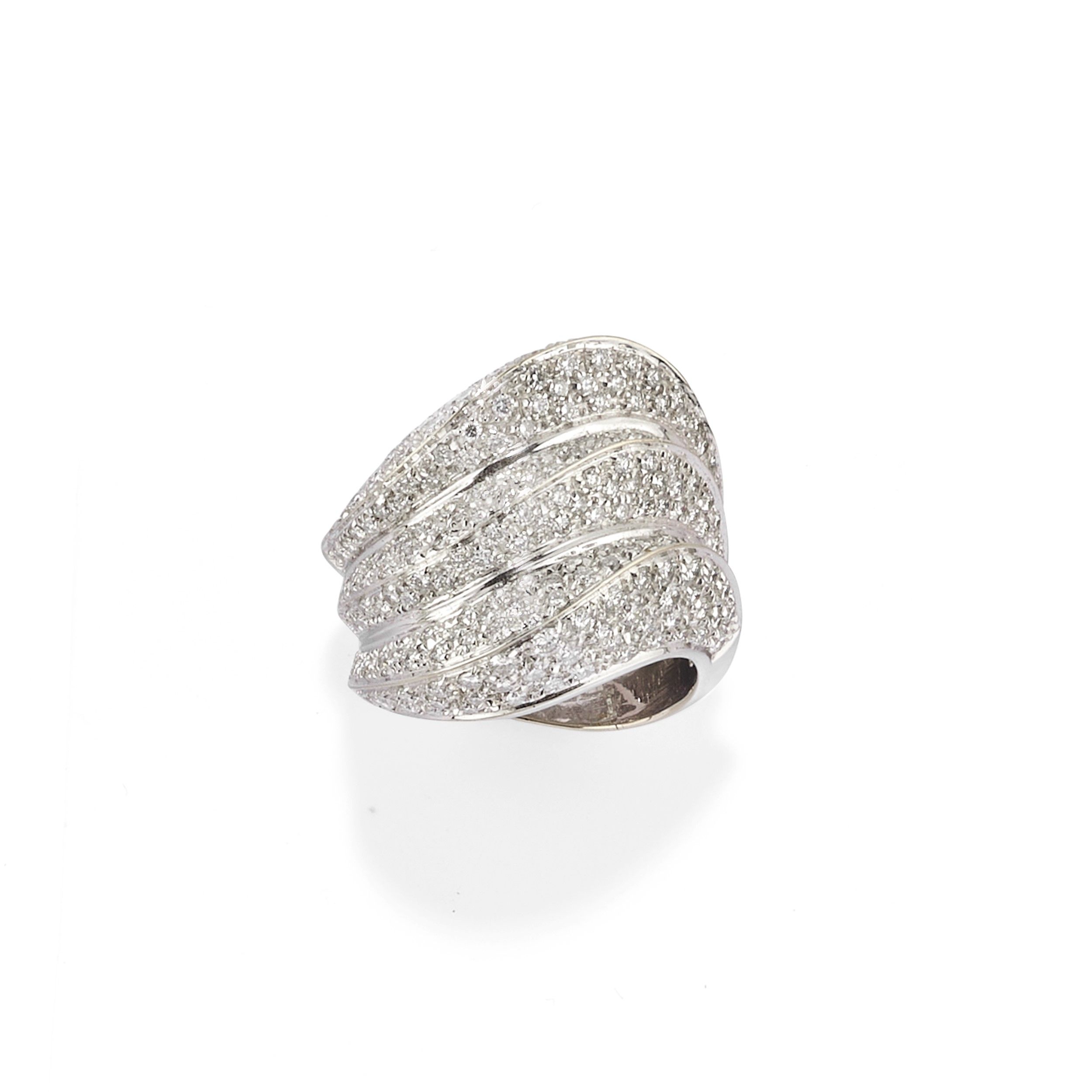 a fascia, motivo ondulato in pavè di diamanti taglio brillante.