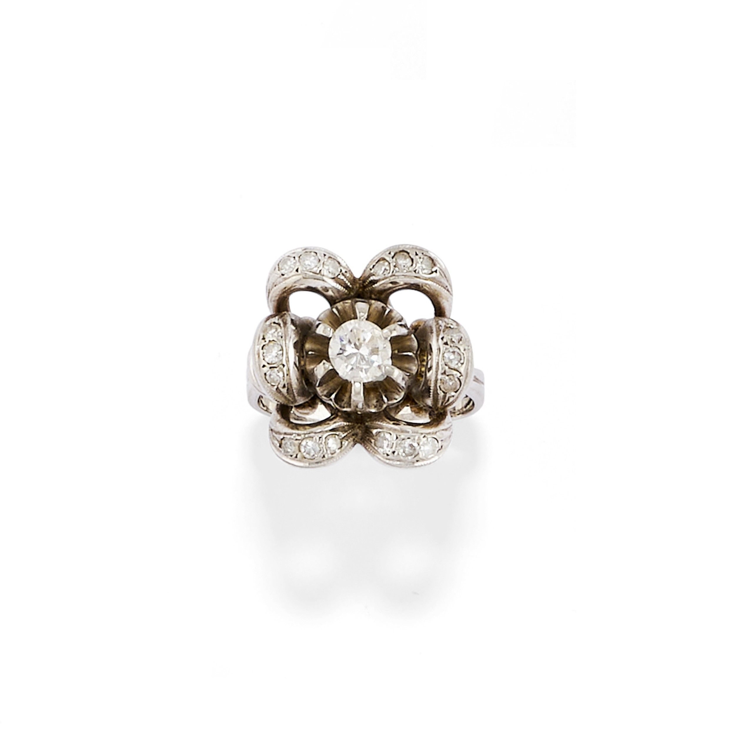 a fiocco con diamanti taglio brillante e huit-huit per totale ct 0,70 circa.
