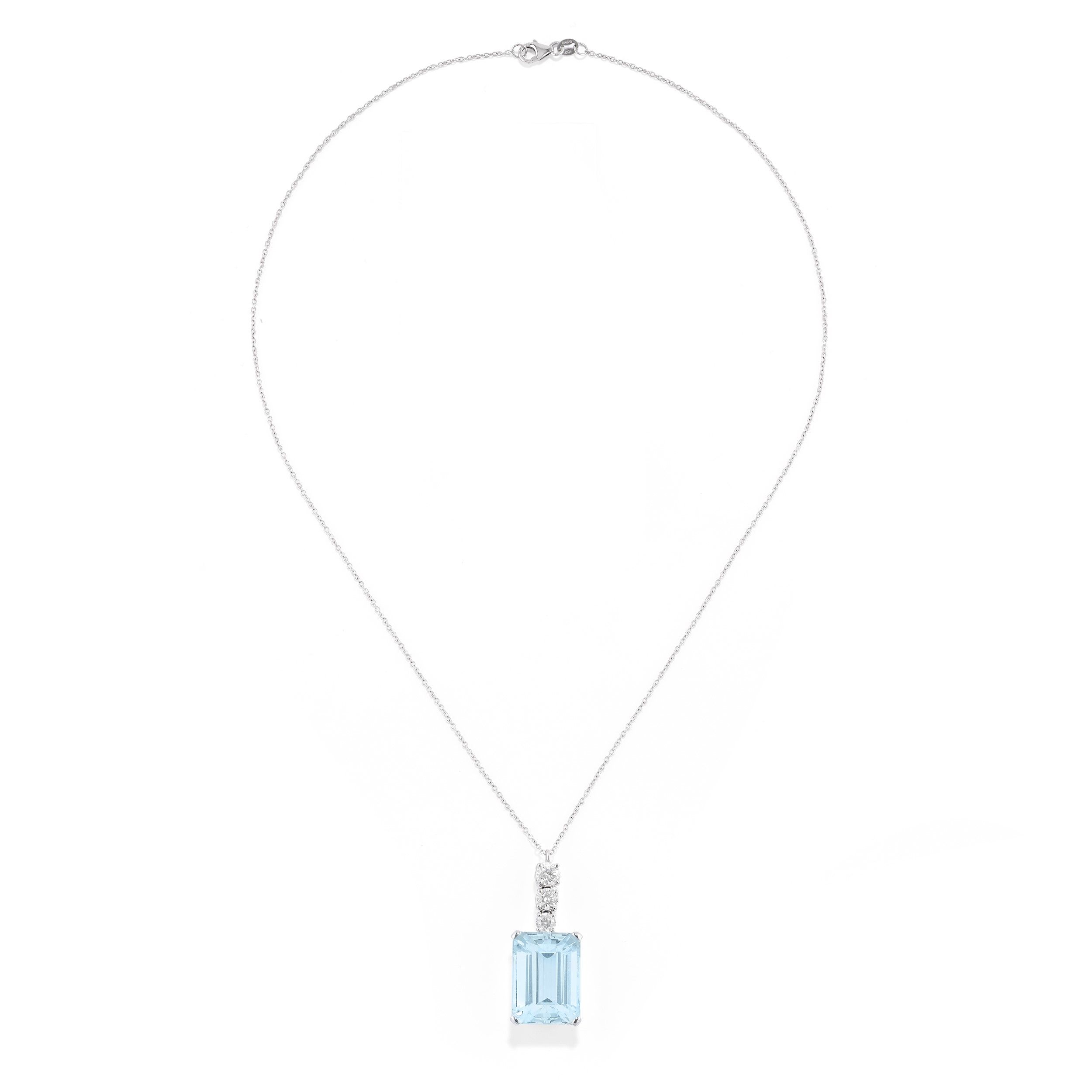pendente con diamanti taglio brillante per totale ct 0,90 circa e acquamarina taglio ottagonale di ct 15,00 circa.