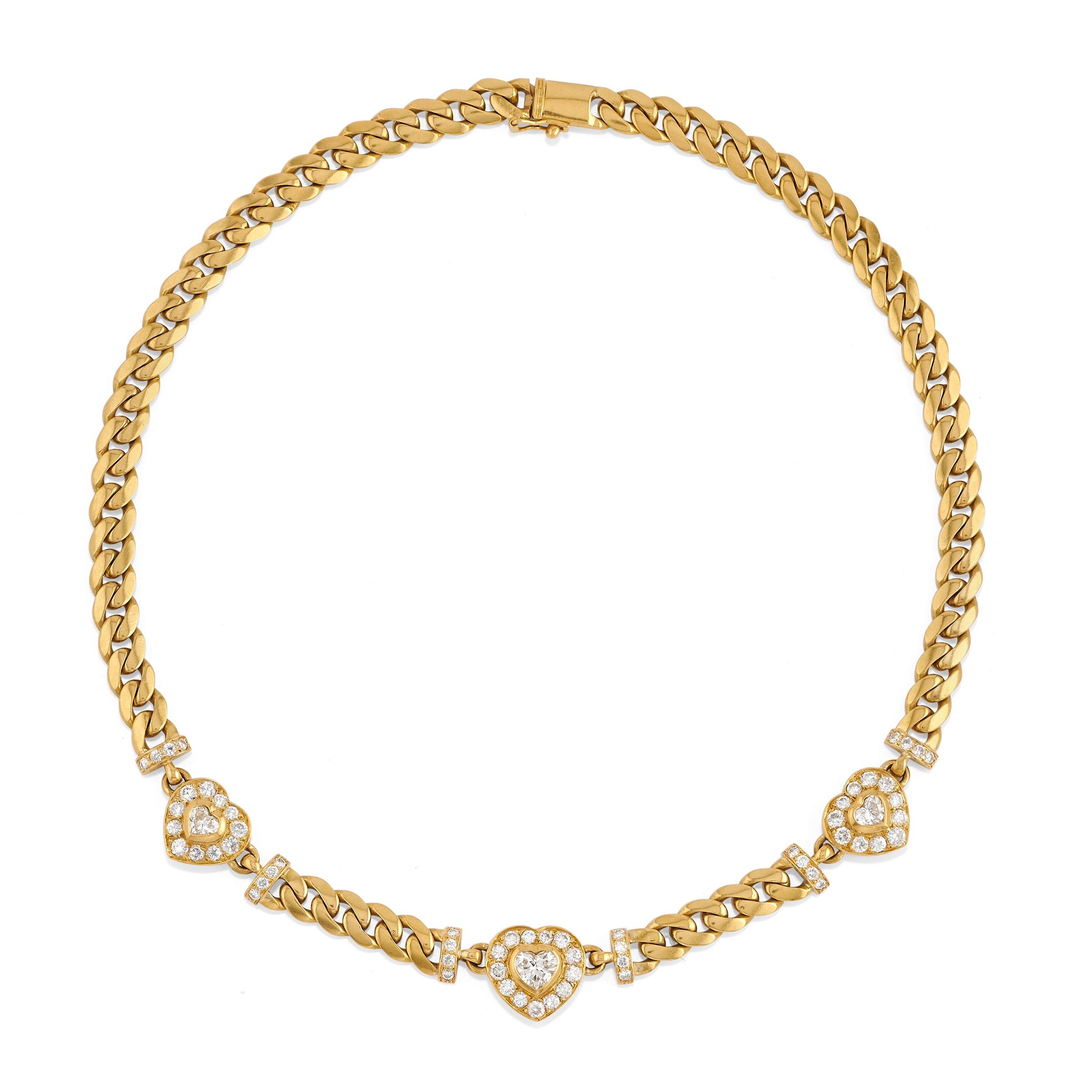 maglia groumette con tre settori a cuore in diamanti taglio brillante e cuore per totale ct 5,00 circa.
