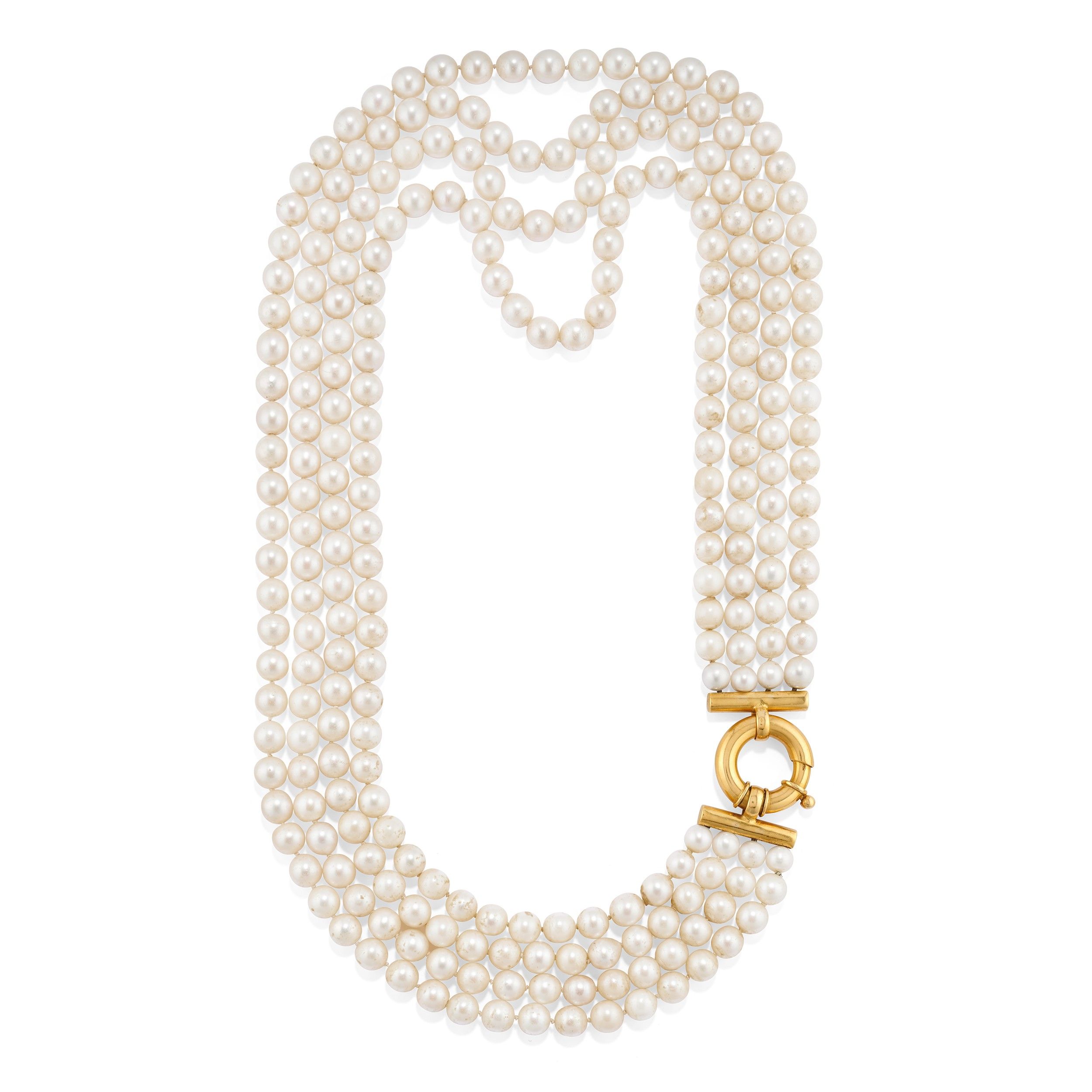 a quattro fili di perle coltivate di mm 8,00-9,50, con chiusura a moschettone.