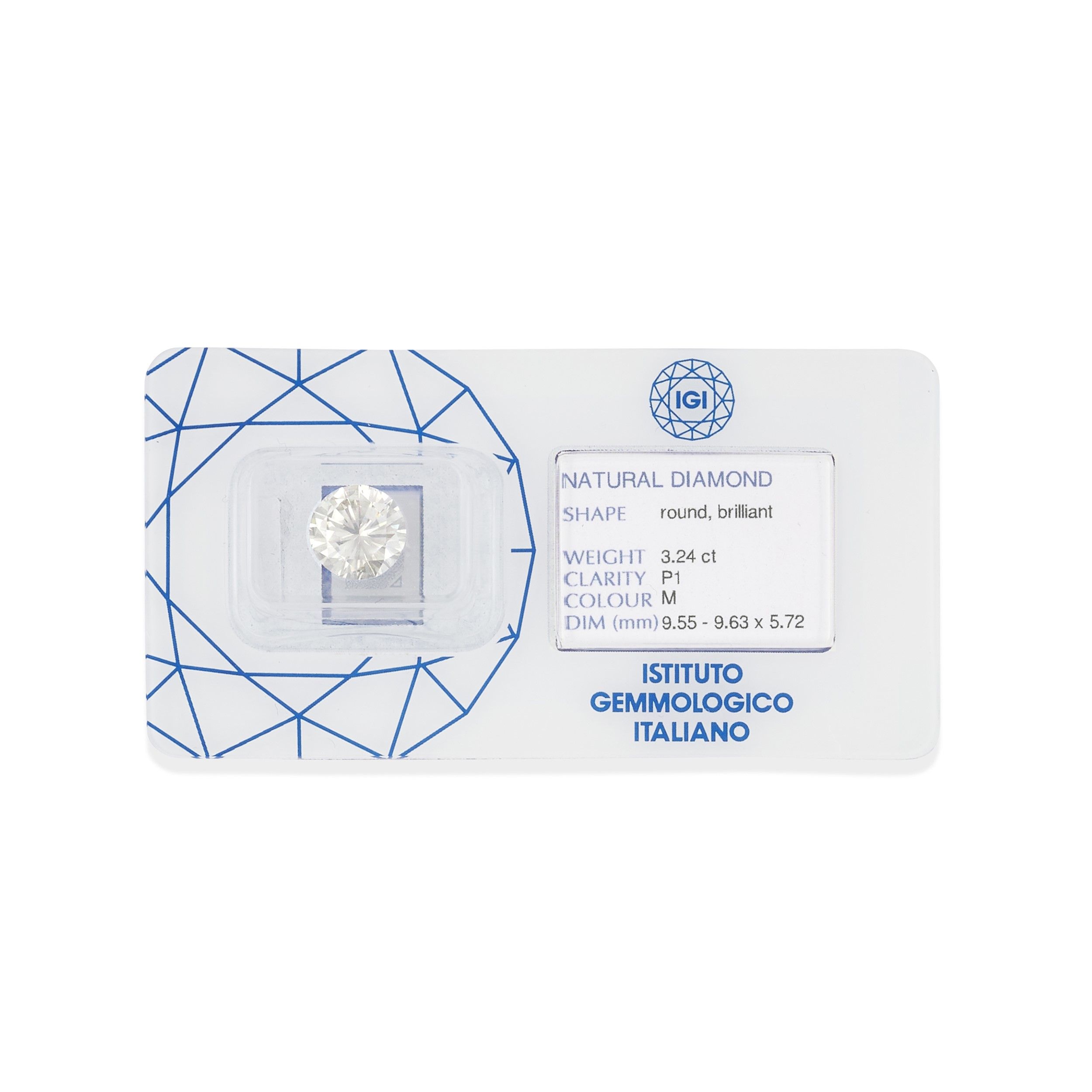 taglio brillante di ct 3,24, colore M purezza P1, entro blister IGI.