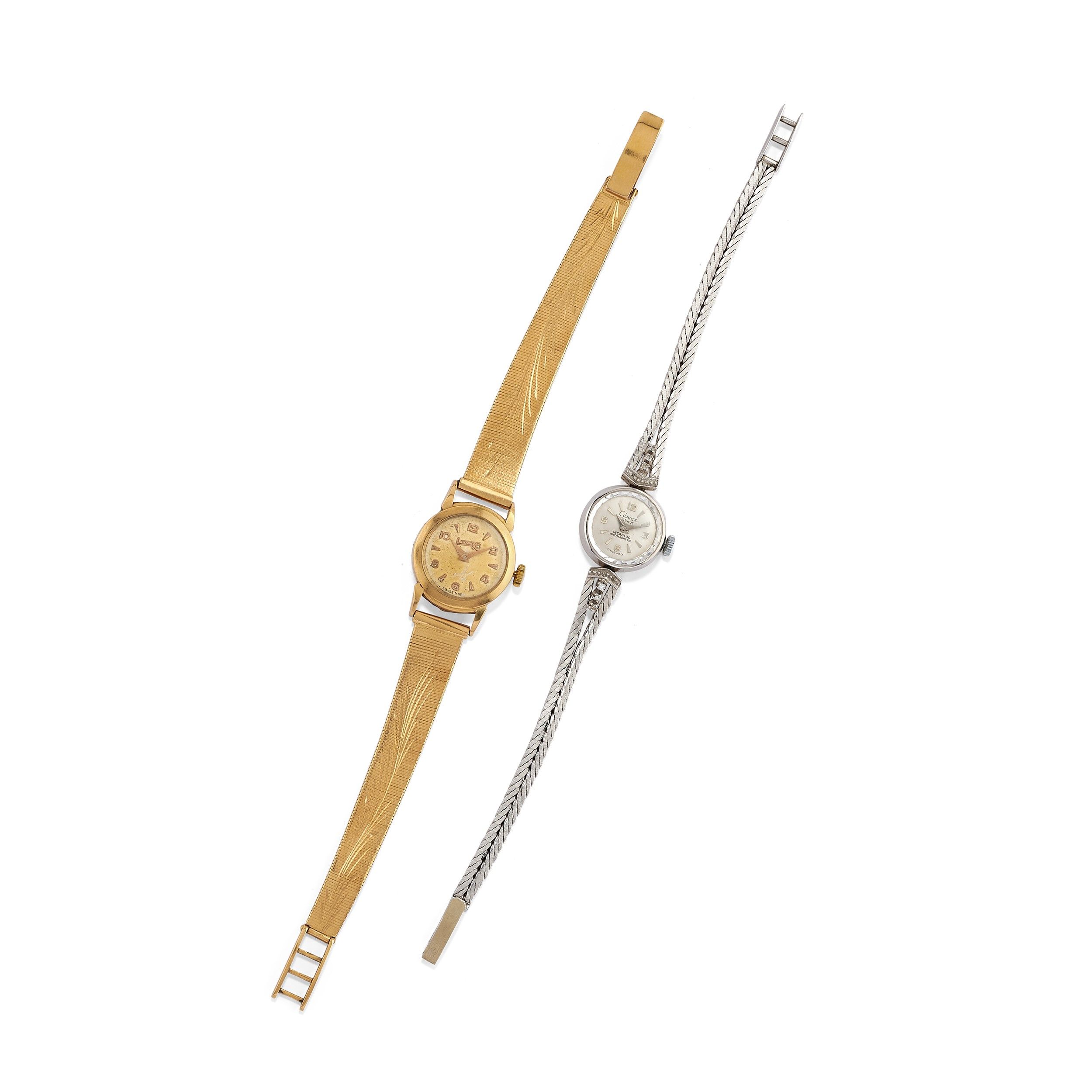 uno Eberhard con cassa rotonda, quadrante champagne con indici e numeri arabi applicati, movimento a carica manuale e uno Gimax con cassa rotonda, quadrante argentato con indici e numeri arabi applicati, movimento a carica manuale, piccoli diamanti a decoro, da revisionare.