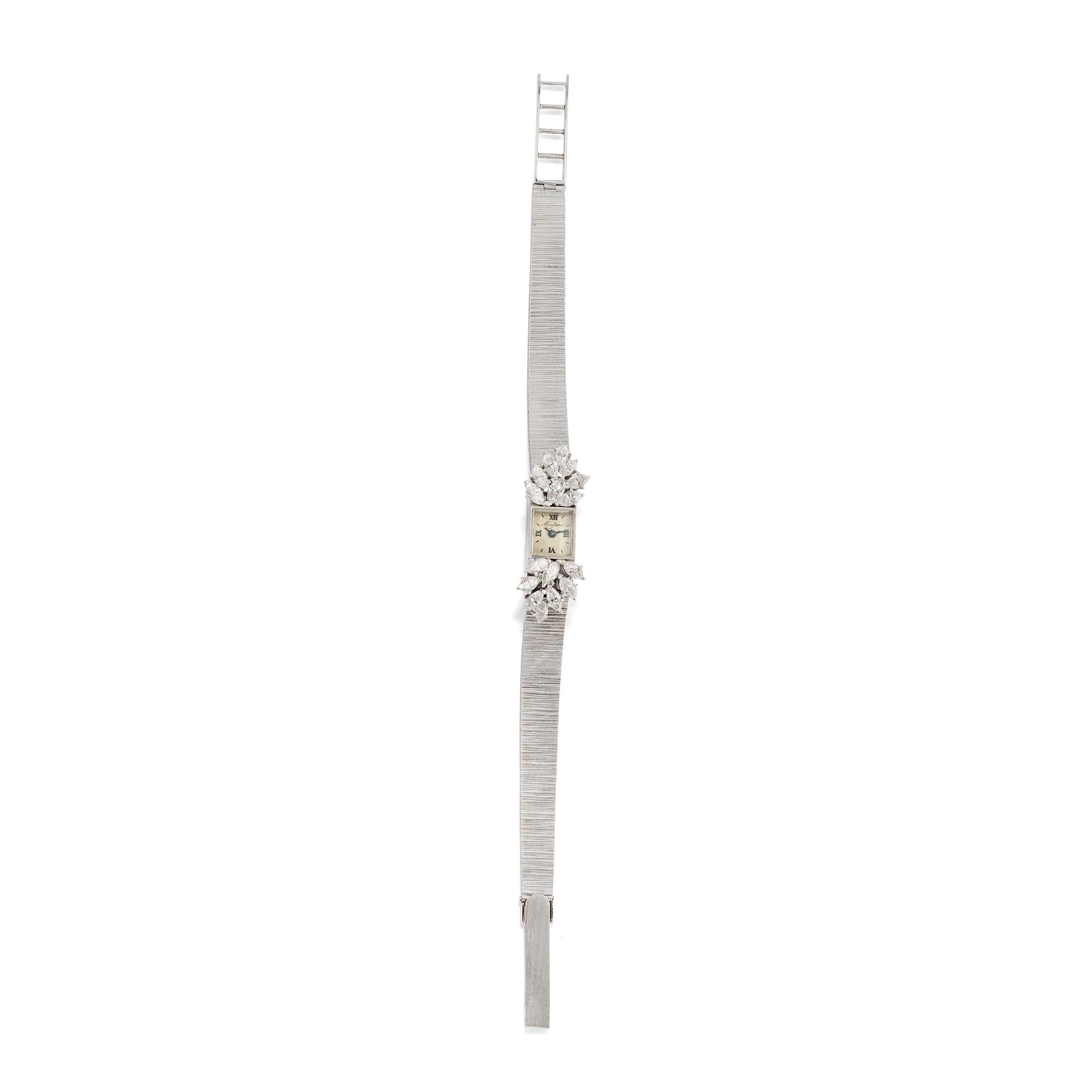 uno Zenith con cassa rotonda, quadrante chiaro con indici applicati, movimento a carica manuale, contorno in diamanti taglio brillante, baguette, tapered baguette e carré, l'altro Montano con cassa quadrata, quadrante chiaro con indici e numeri romani in smalto nero, movimento a carica manuale, decoro in diamanti taglio navette, da revisionare.