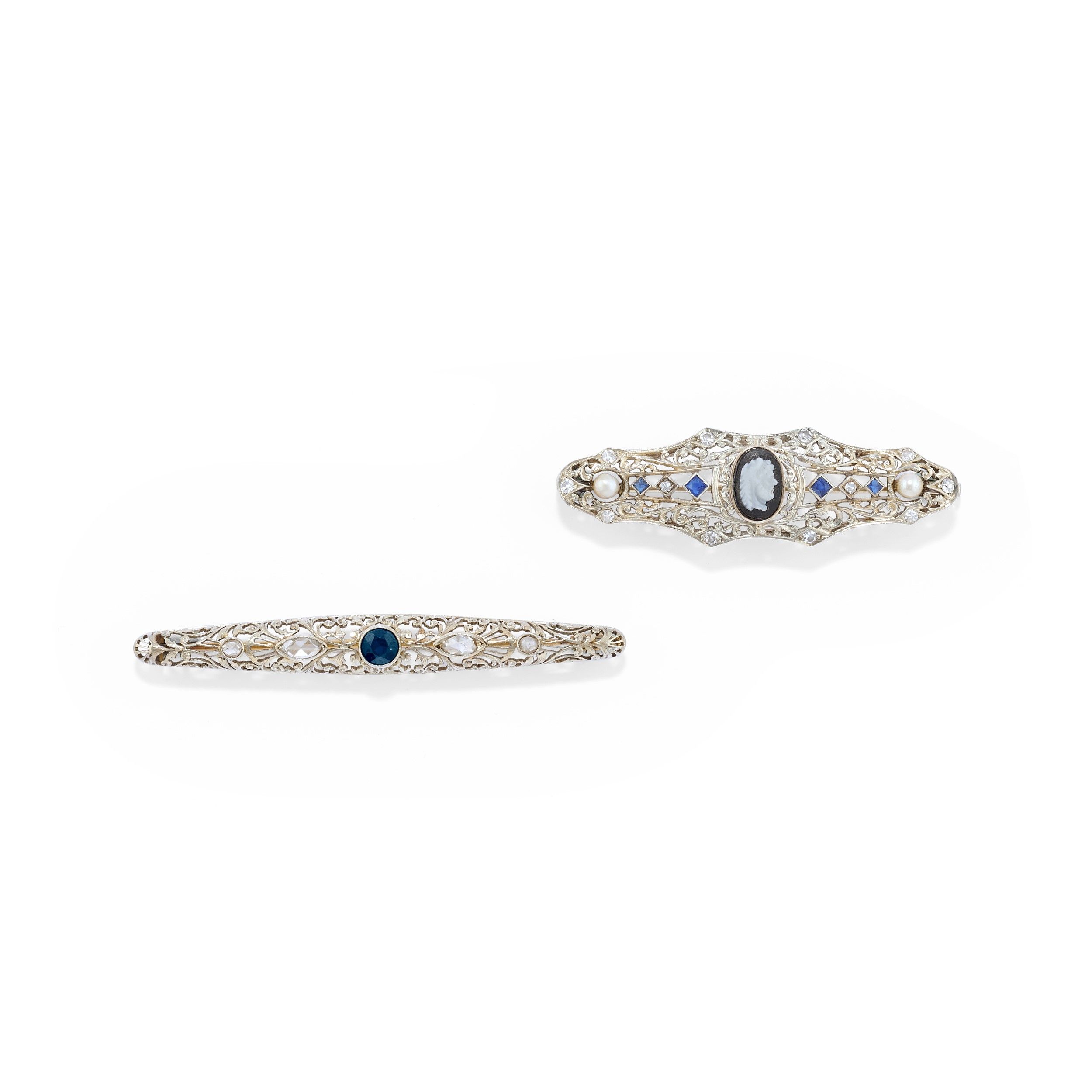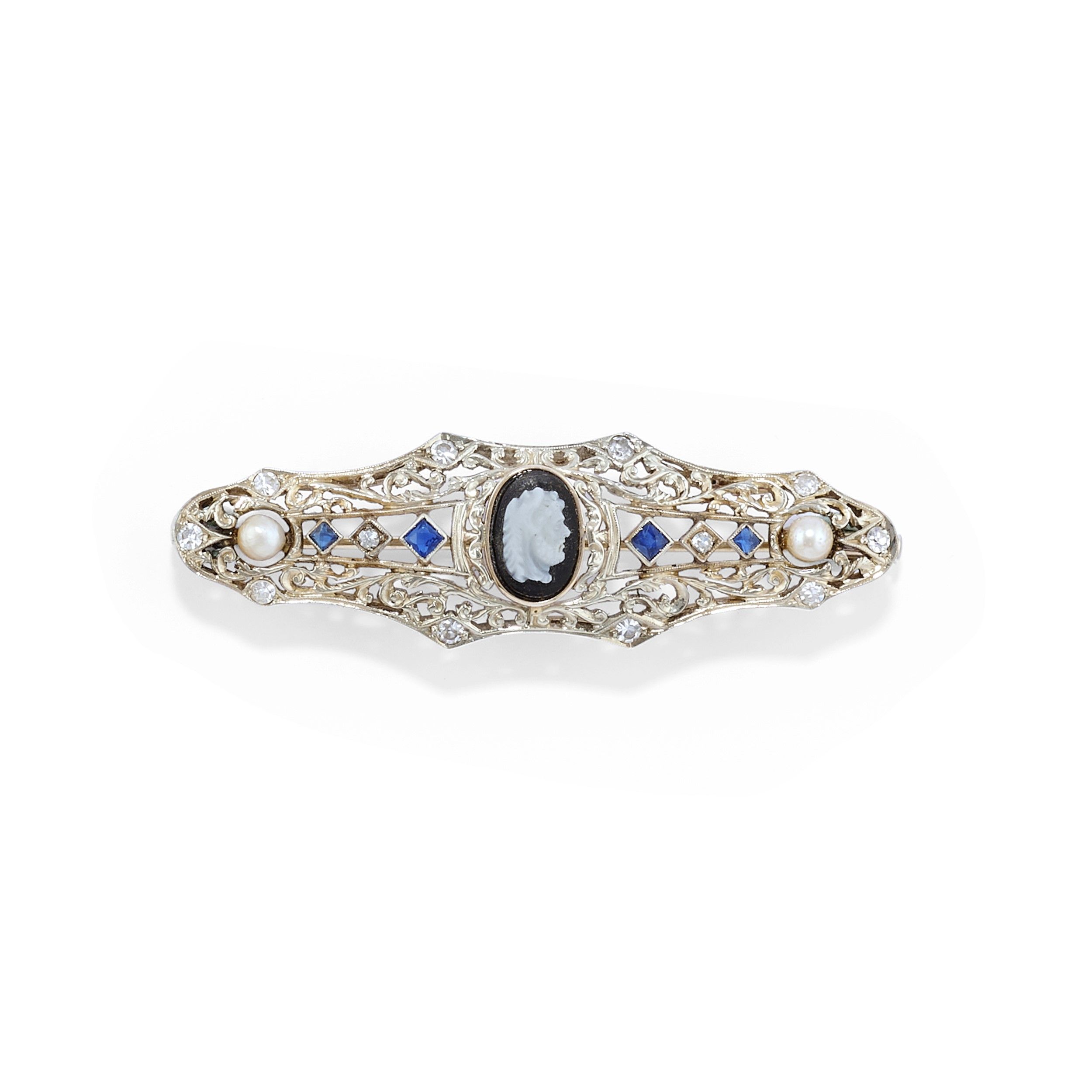 a barretta, traforate e decorate da cammeo, diamanti, perle e zaffiri.