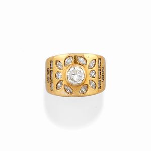 in oro bianco 18k, Peso g 8,20 misura 14 a catena groumette rigida, decorata da diamanti taglio brillante per [..]