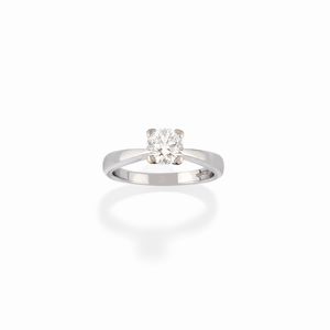 in oro bianco 18k, Peso g 4,70 misura 15,5 a solitario, con diamante taglio brillante di ct 1,01, colore G purezza [..]