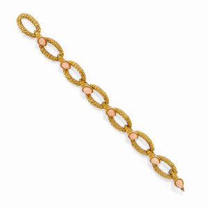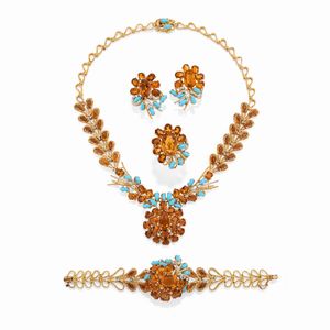 in oro giallo 18k, Peso g 236,20 cm 46,00-18,00-4,00 misura 19 composta da collana con pendente, bracciale, anello [..]