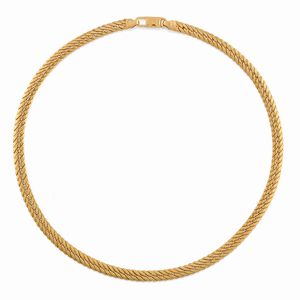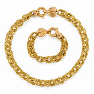 in oro giallo e rosso 18k, Peso g 86,90 cm 45,00-20,00 a doppia maglia in stile etrusco, moschettone con motivo [..]
