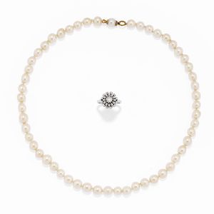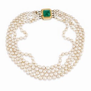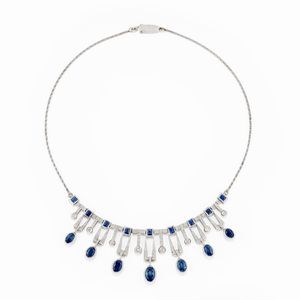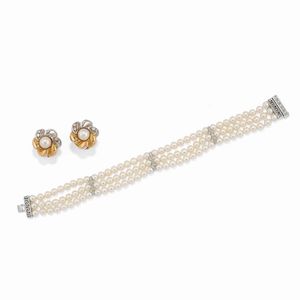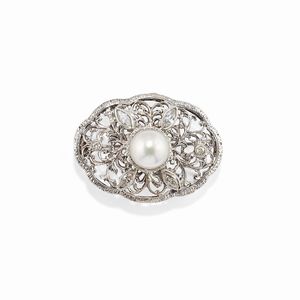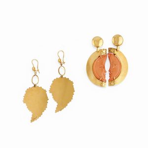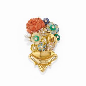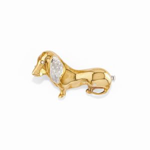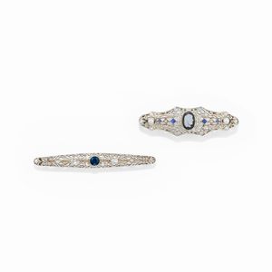 in oro giallo 18k, Peso g 36,60 cm 1940 circa a volute con diamanti taglio vecchio, brillante e huit-huit per [..]