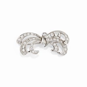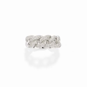 in oro bianco 18k, Peso g 8,20 misura 14 a catena groumette rigida, decorata da diamanti taglio brillante per [..]