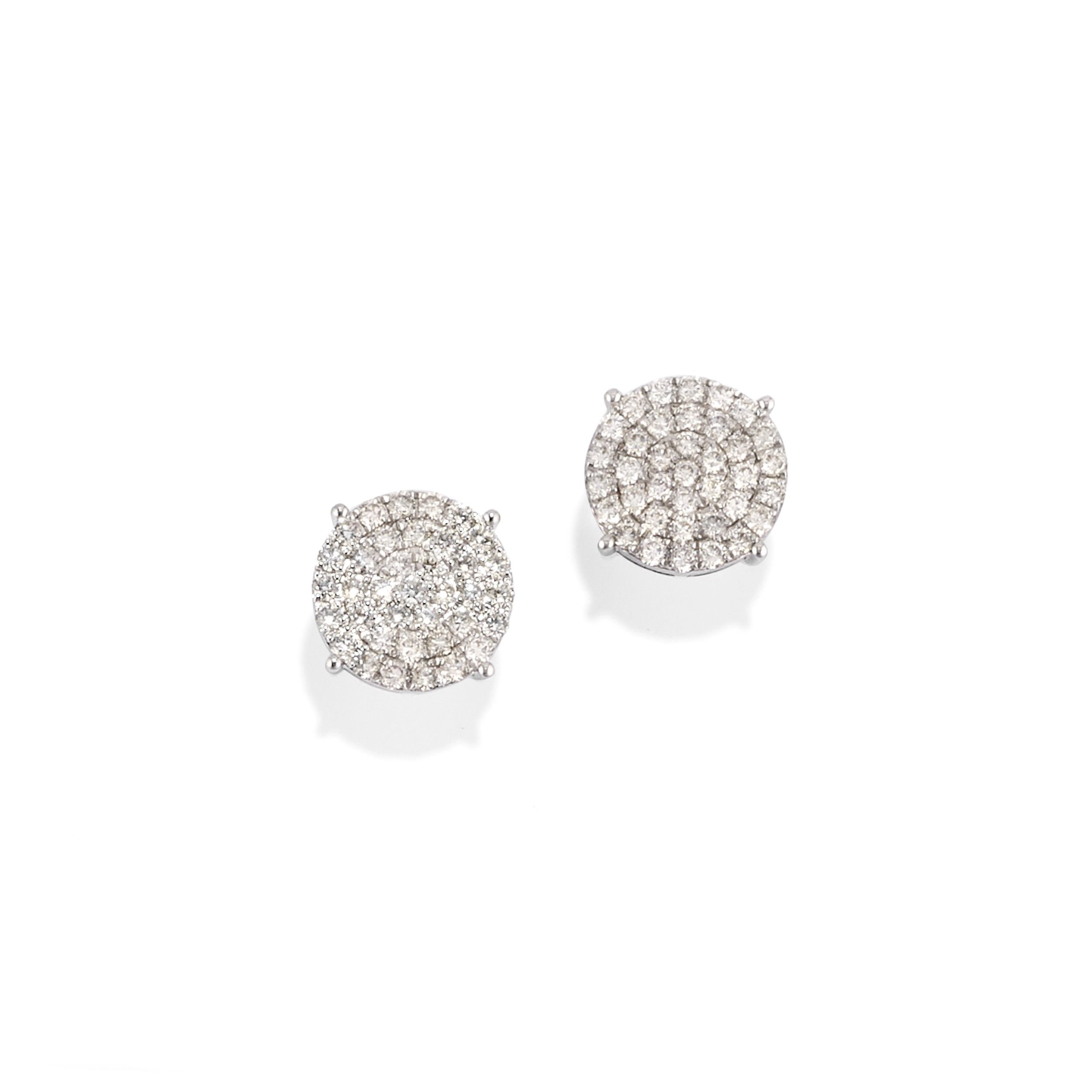 motivo a disco, impreziositi da diamanti taglio brillante per totale ct 1,60 circa, chiusura perno e farfalla.