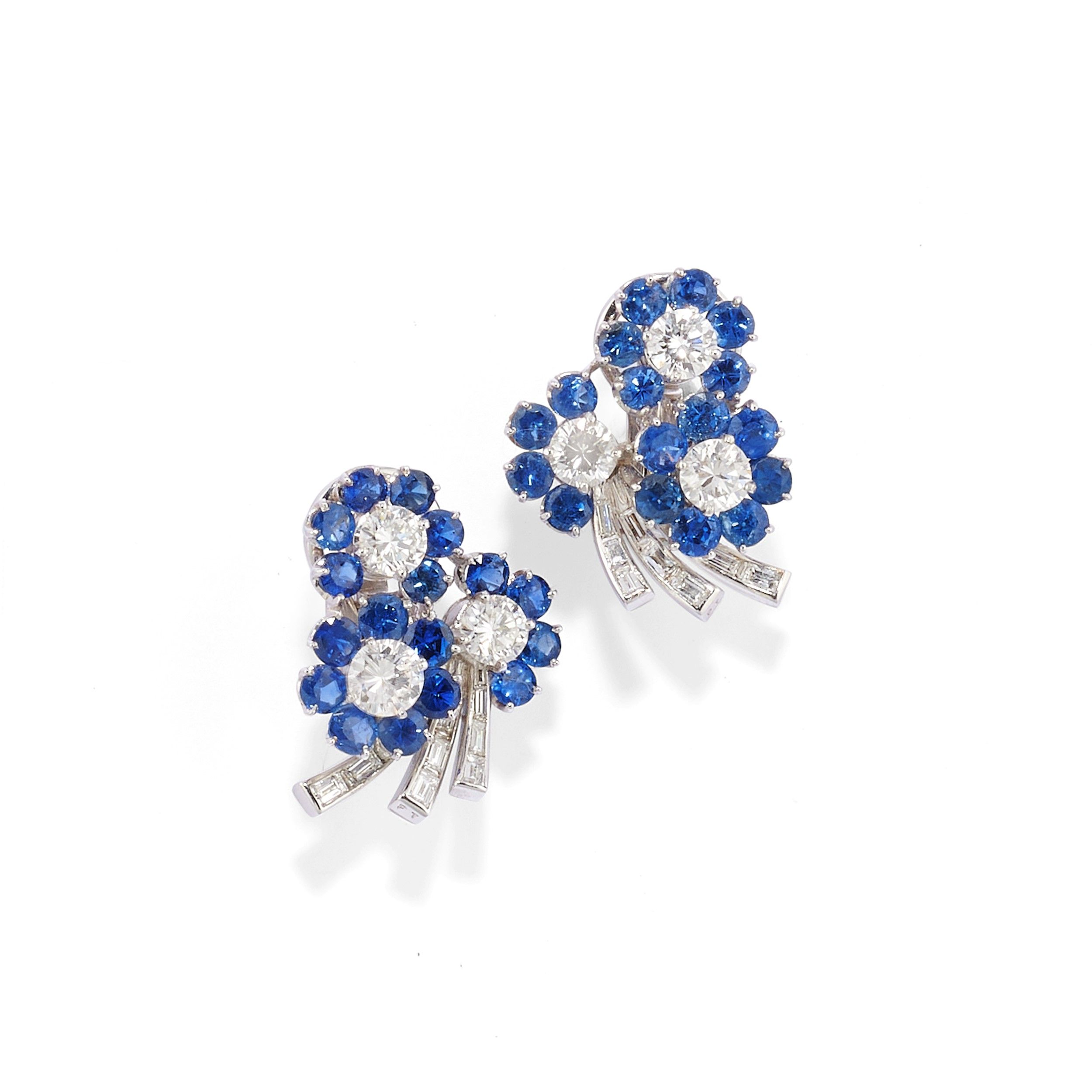 Orecchini con diamanti e zaffiri  - Asta Gioielli Importanti - Associazione Nazionale - Case d'Asta italiane