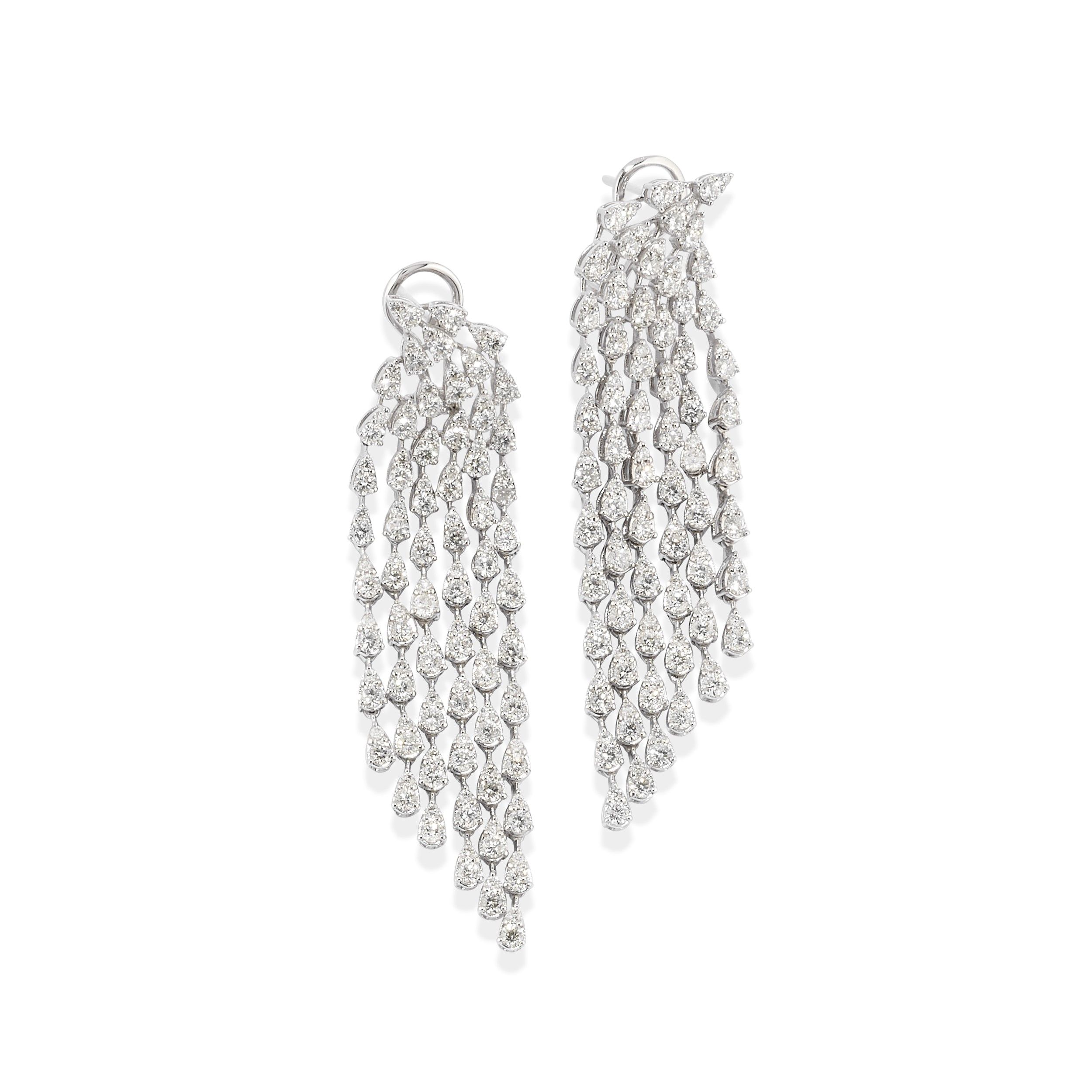 a motivo frangiato, con diamanti taglio brillante per totale ct 6,48 (caratura incisa), chiusura perno e clip.