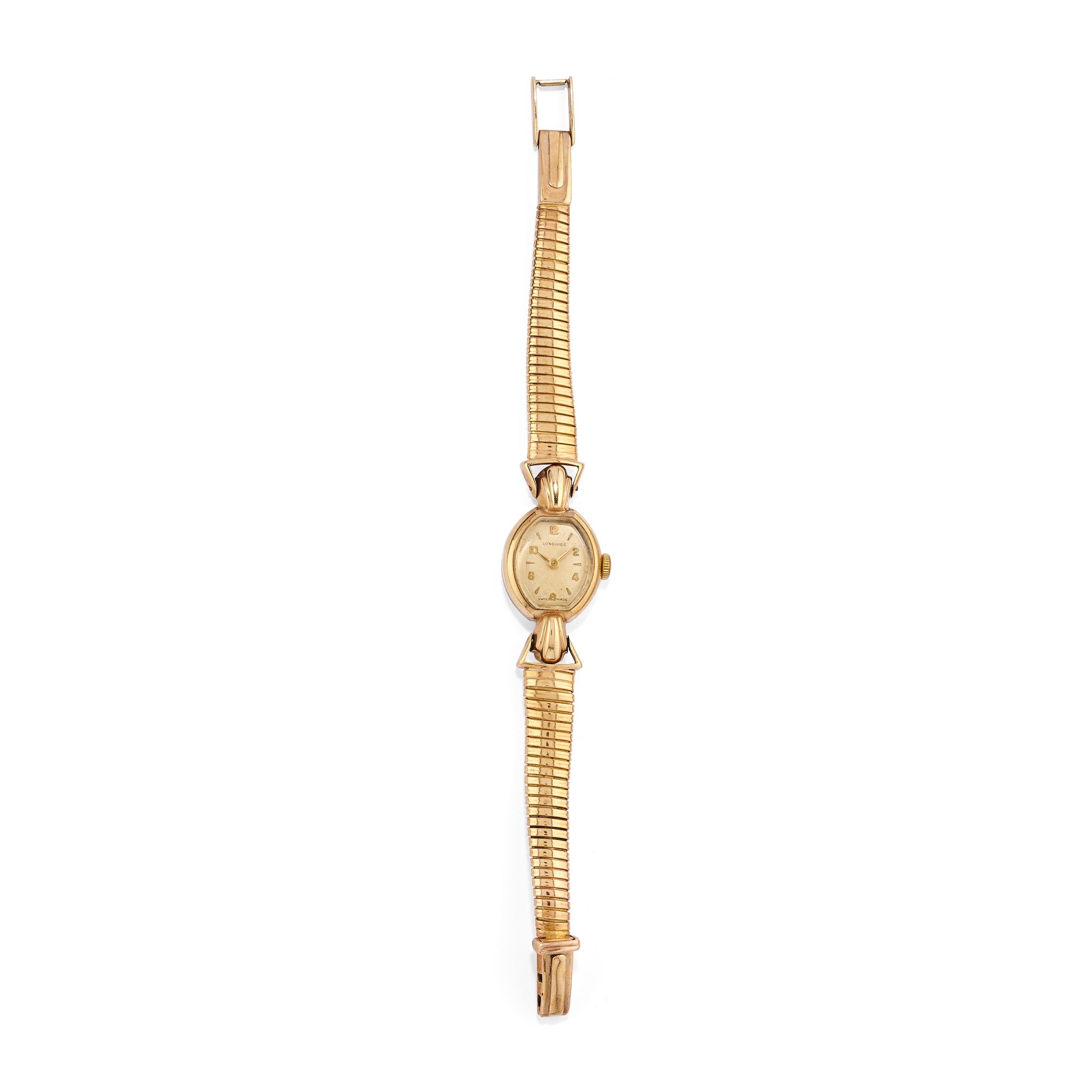 cassa ovale, quadrante champagne con numeri arabi applicati, carica manuale, bracciale tubogas, da revisionare.