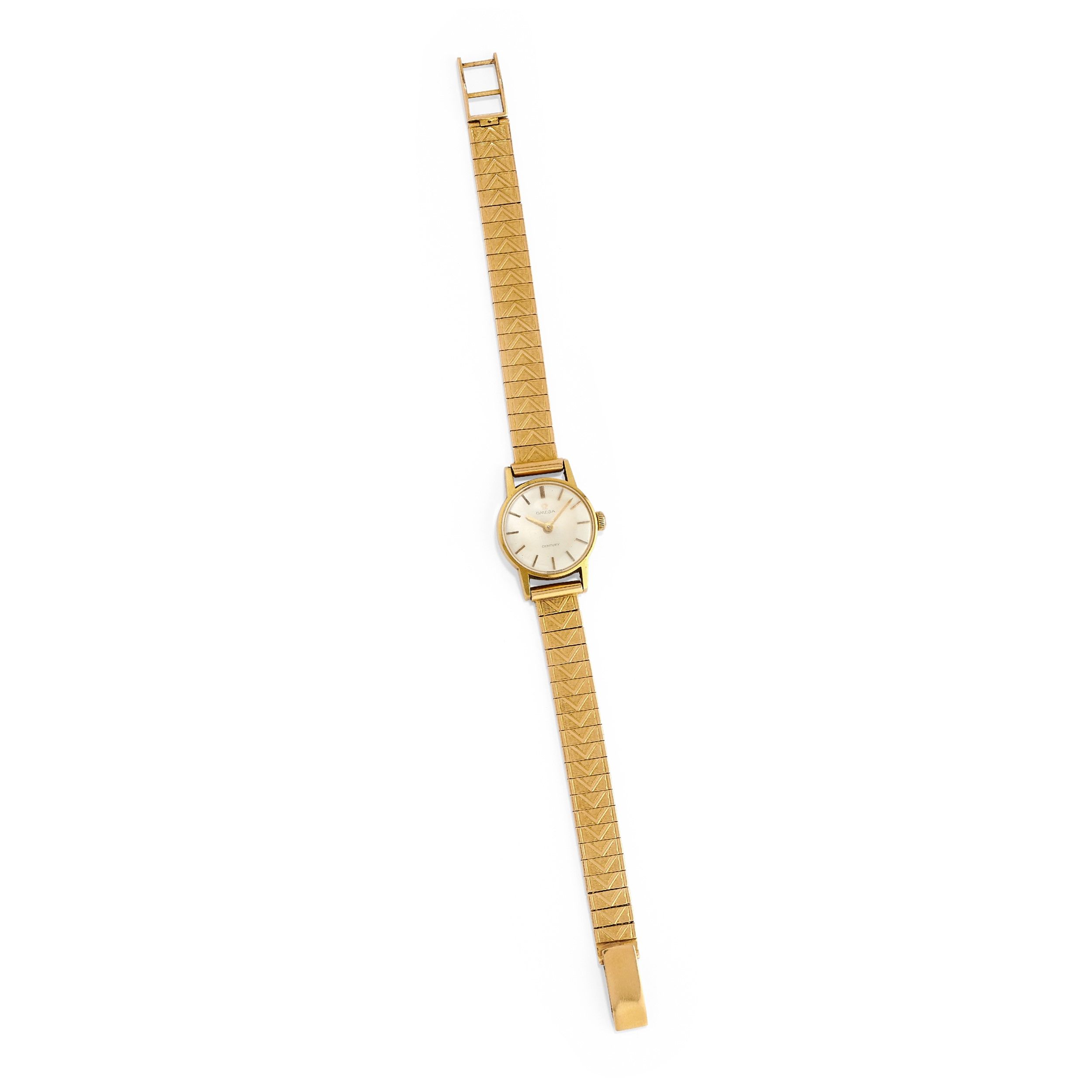 cassa rotonda, quadrante chiaro con indici applicati, movimento a carica manuale, bracciale non originale, da revisionare.