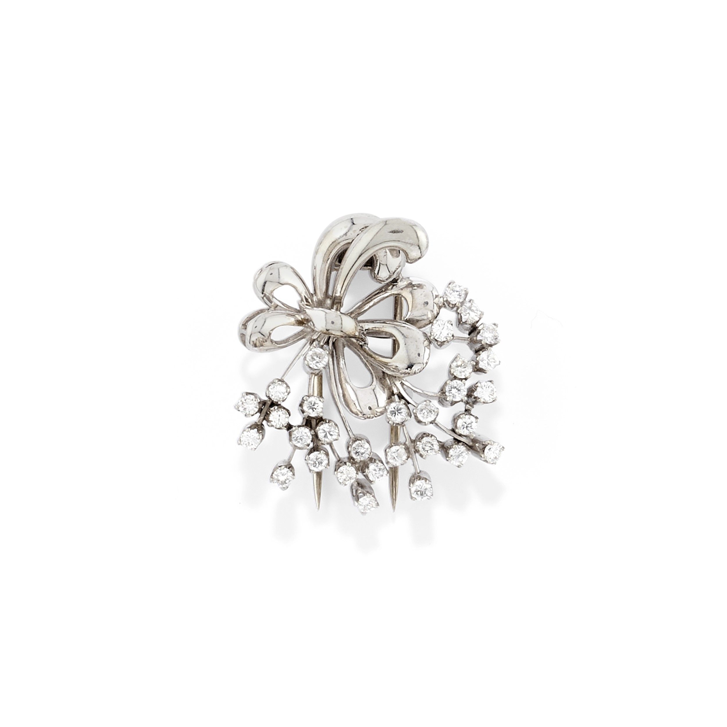 a motivo floreale, con diamanti taglio brillante per totale ct 1,00 circa.