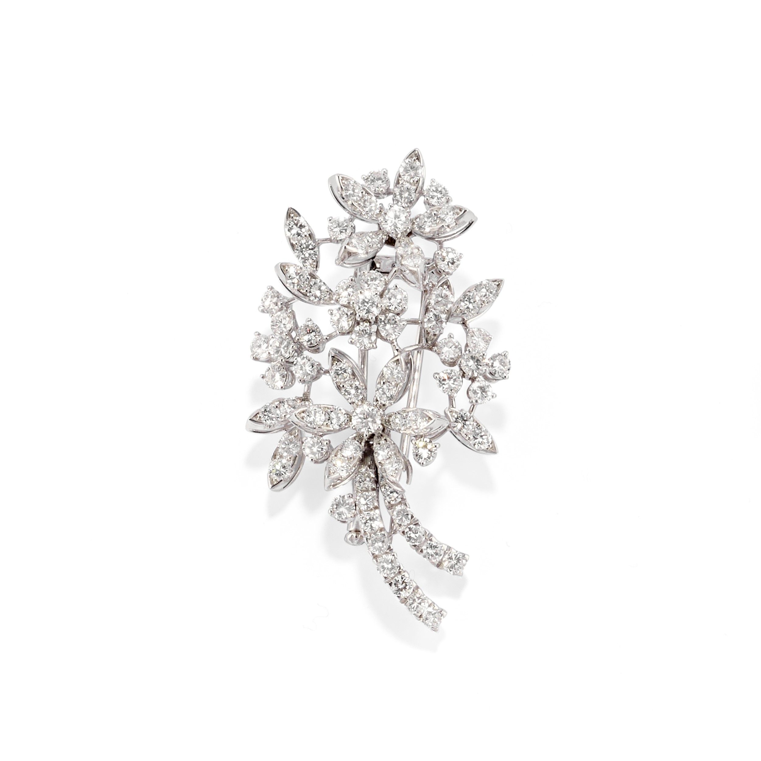 a bouquet floreale, con diamanti taglio brillante per totale ct 4,00 circa.