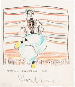 Matite colorate su carta, cm 24,8x21,2 Luogo, titolo e firma in basso al centro: Tunis - Chanteuse Juive / Mon [..]