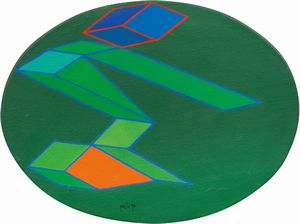 Tecnica mista su tela, cm 29,5x39,5, ovale 1994 Firma e data in basso al centro: Perilli 94; firma e titolo al [..]