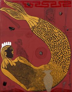 Smalto e acrilico su tela, cm 50x40 2001 Titolo, firma e data al verso sulla tela: La Sirena del Nilo / Fathi [..]