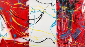 Acrilico su tela applicata su pannello medio density, cm 114,5x207 2003 Titolo, firma, data e scritta al [..]